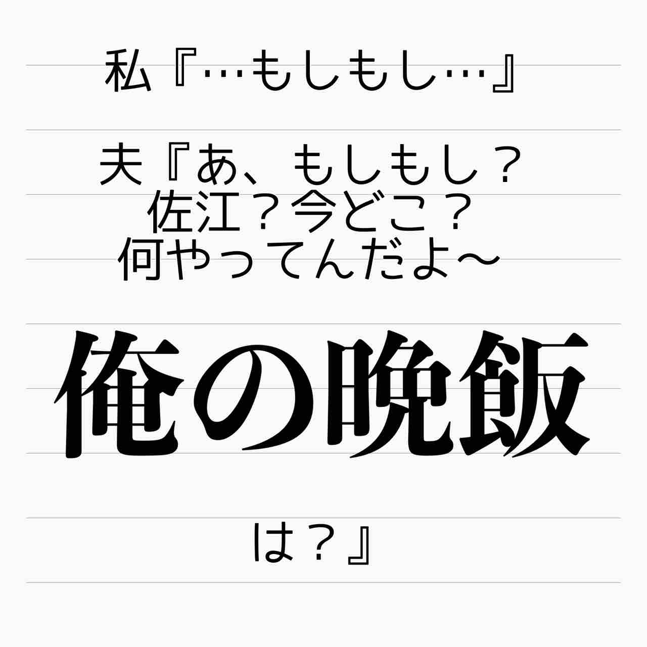 「かぁちゃん〜ご飯」って言う小学生並みだわ