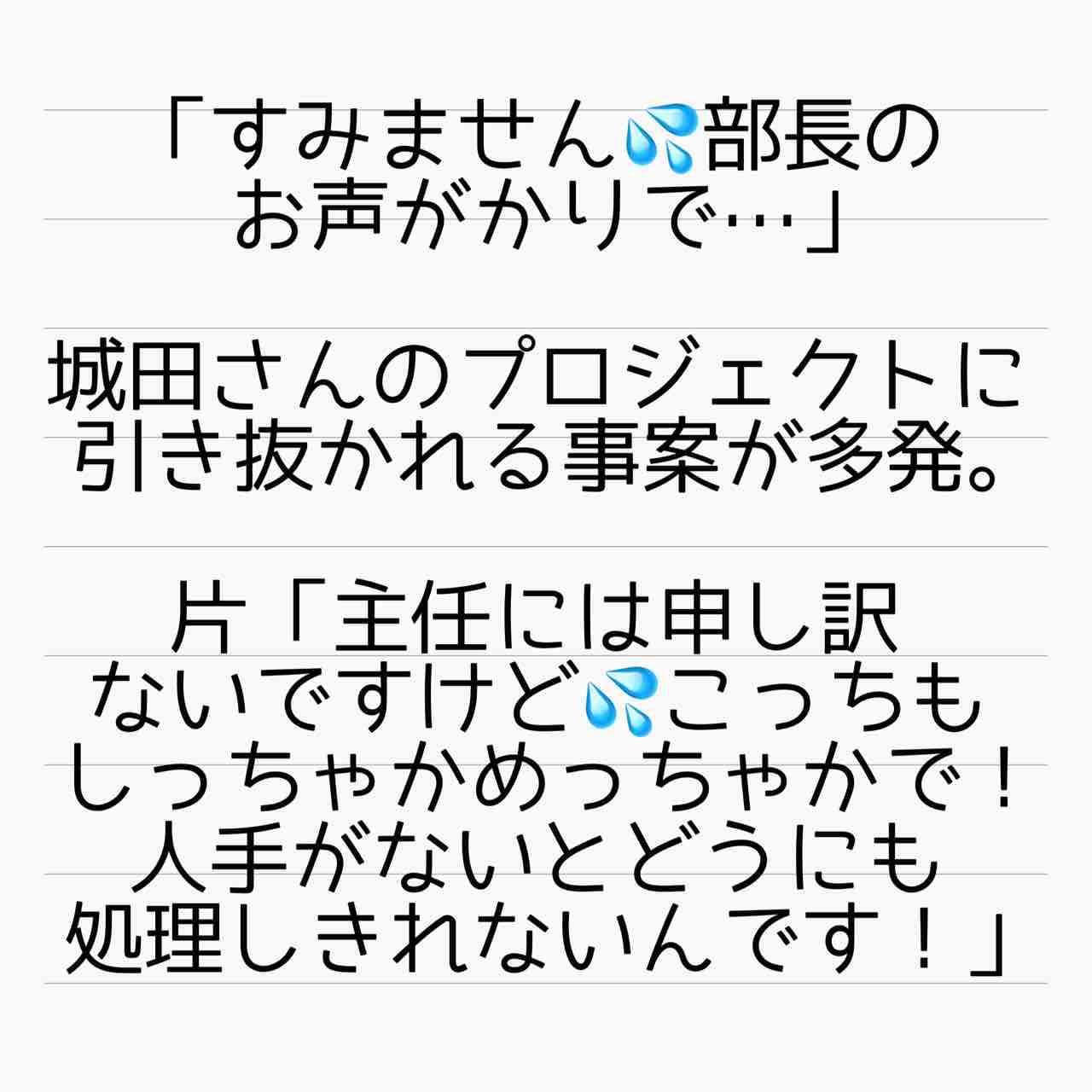それで主任側のプロジェクトが進まなくなったら、えー主任ならあの人数で回せるはずなのに、能力低いんですね!みたいなこと、平気で言いそう