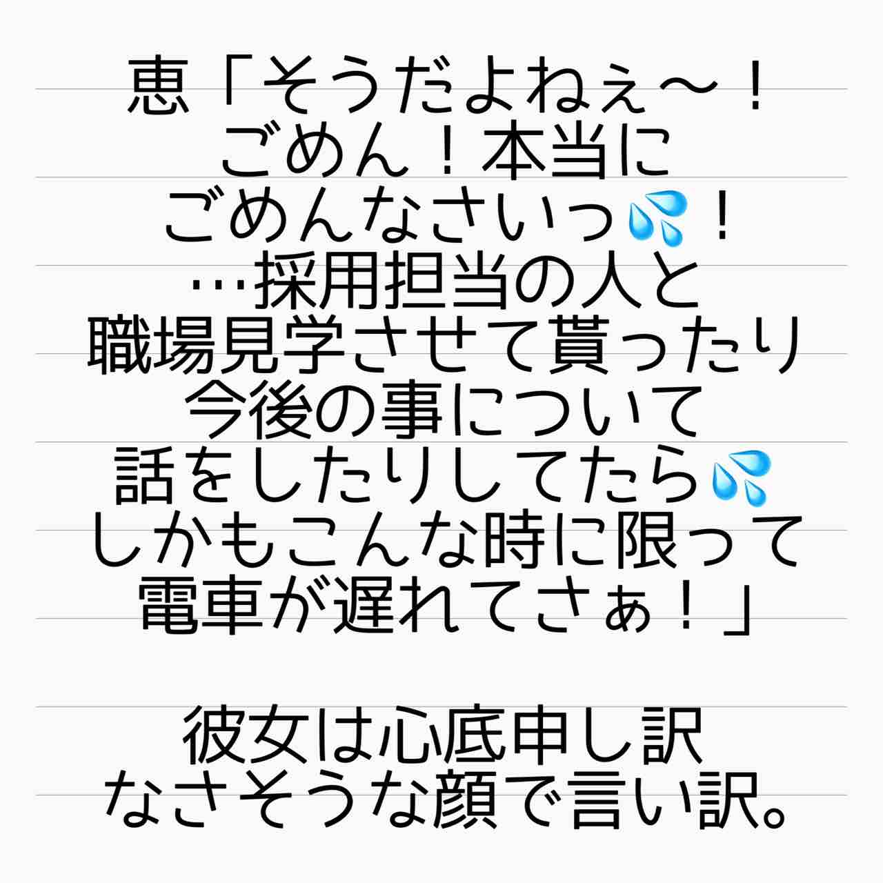 恵子は頼んでる人の態度じゃないし、2時間以上遅れた上に連絡取れないって😠どうせ遅延も嘘なんでしょ?