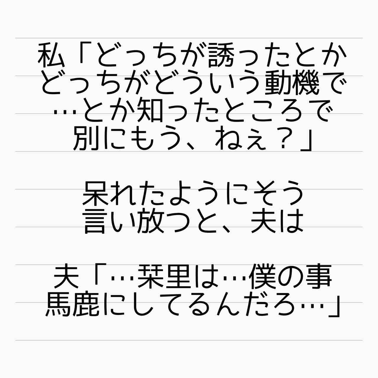 栞里さんを選んだのも主夫を選んだのもシロタンと不倫したのも、全部自分が選んだことじゃん!