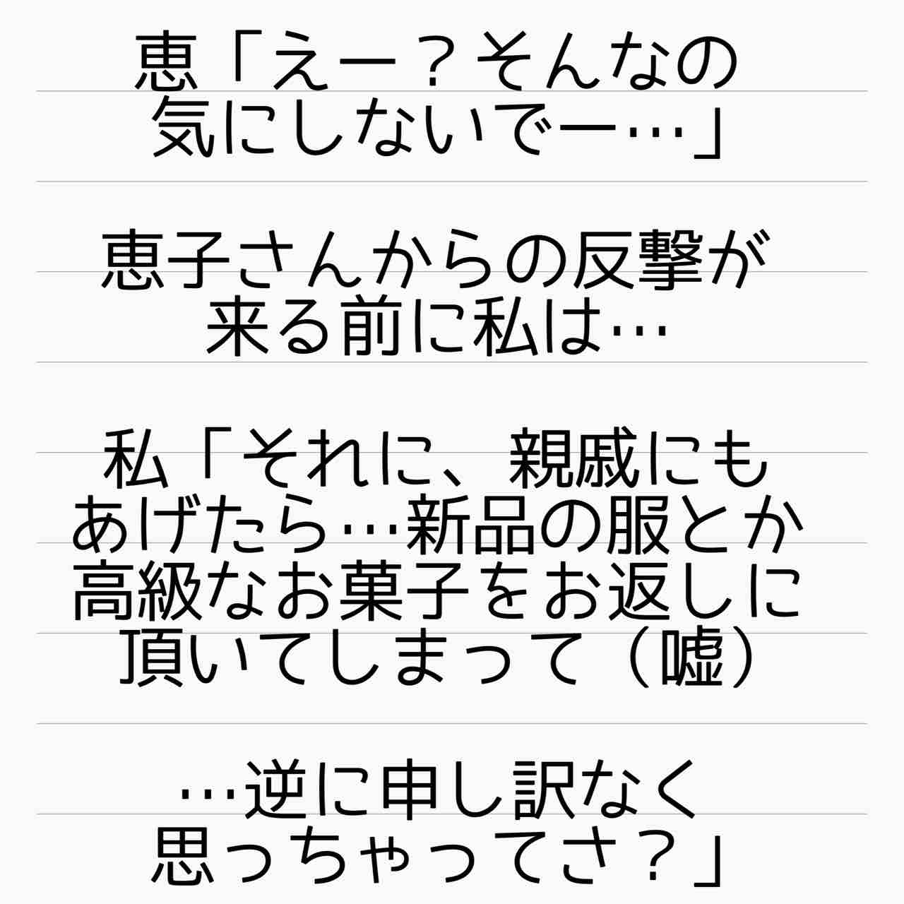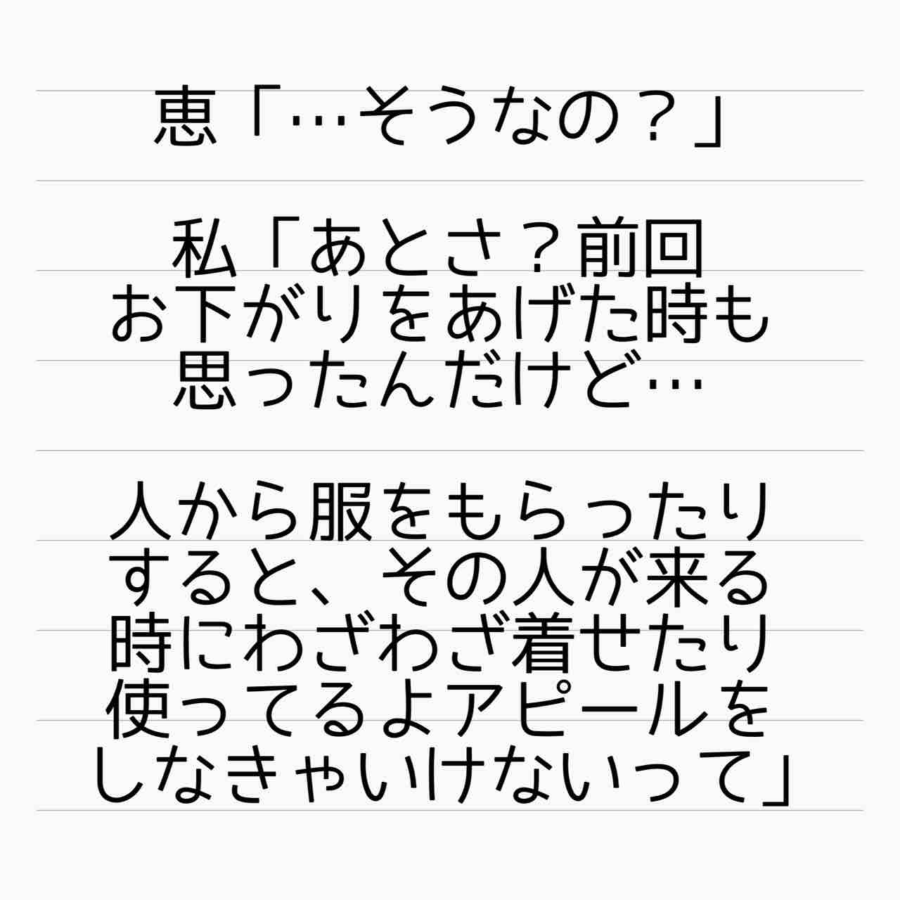だいたいプライドが高い人が多いから、そんなことしてたらかえって怒りそうだけど、なんかカラクリがありそうで😅旦那も知らないで夕飯食べてるだけな気がするし、服も実際は旦那に「いらないって言われたら貰った」ぐらいにしか言ってなさそう笑