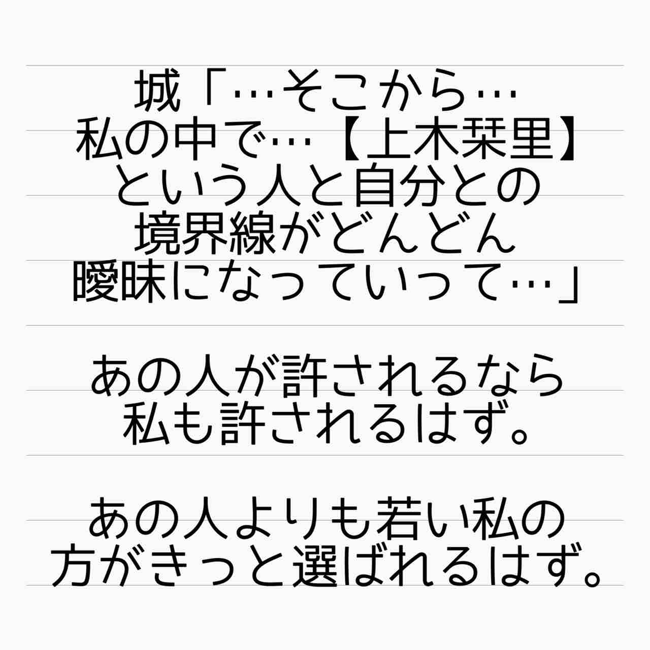 ていうか、ちゃんと栞里さんの良いところを見習ってちゃんと頑張ってれば君島くん的にはありだったんじゃないのかな?←普通は不倫に走ろうなんて考えないし💨