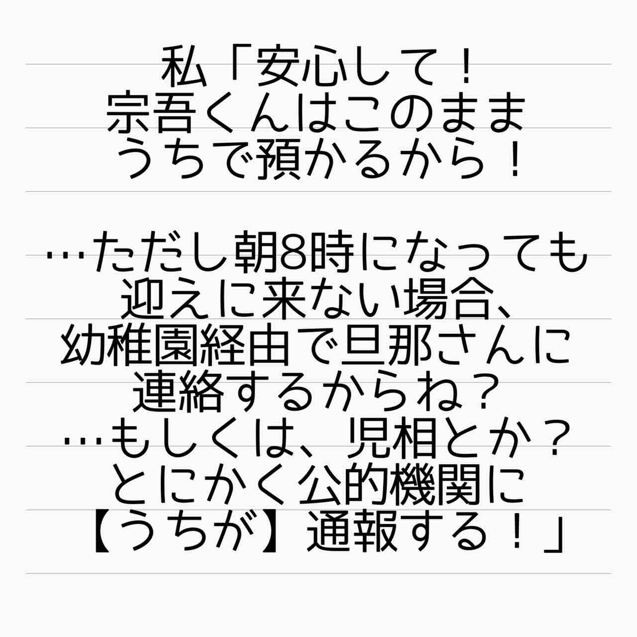 ちゃんと時間守って宗吾くん迎えに来るんだよぉー☝でなきゃ、DV旦那さんに連絡いくようになっちゃうからねー🙌