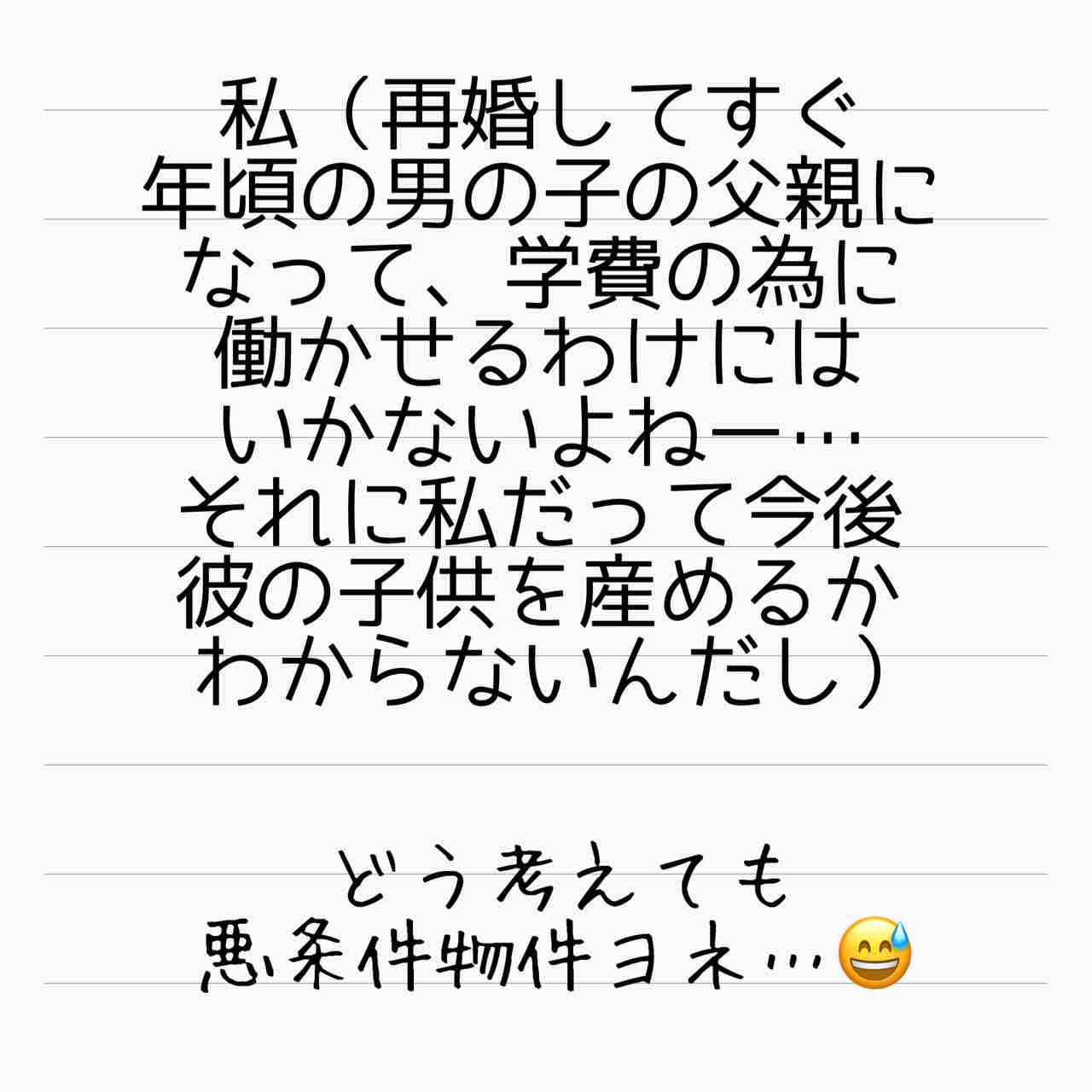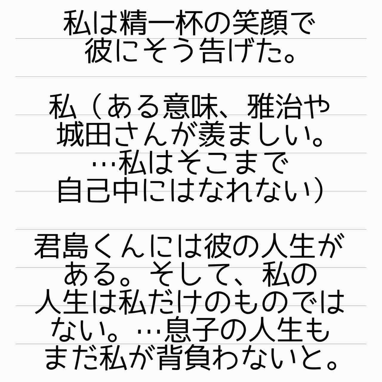 わりと母親としてより女の面が強い主人公ですね…私は父親との再婚相手と関係に苦労したので、再婚なんてしません
