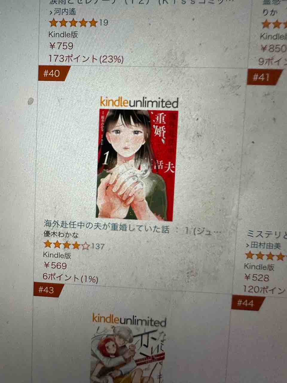 さっき確認したらAmazon女性漫画ランキング(有料版)で40位に!