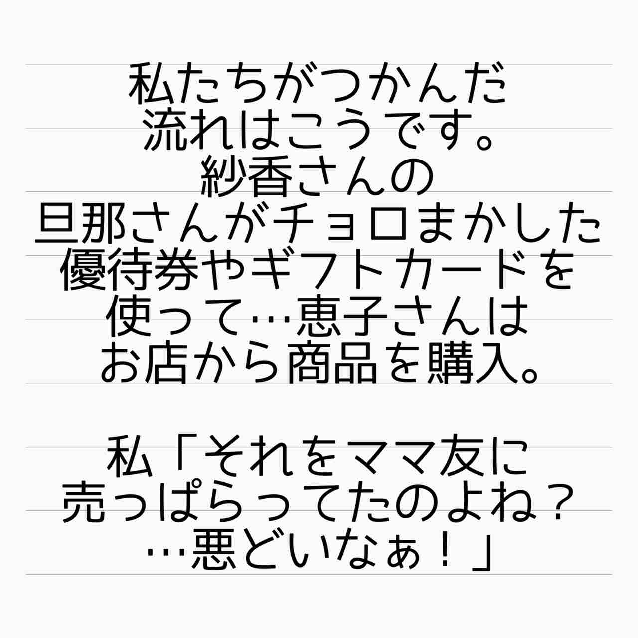 そりゃあ押し売られたママ友さんも紗香さんに苦情も言いたいし、クレ子だけが強引で紗香さん出てこないからおかしいとも思ったでしょう。