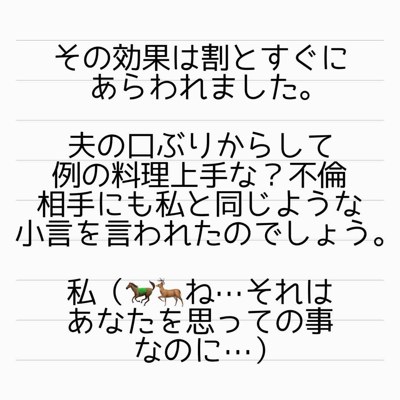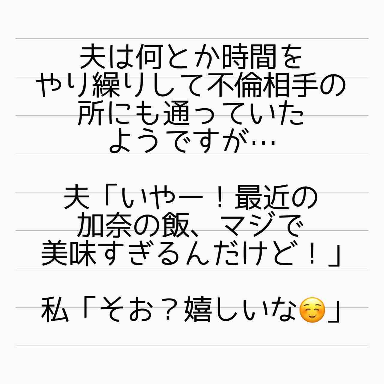 さて、この後どうするのかな?旦那を食べ物で釣って、相手には関係修復が順調だとアピールして、二人を別れさせてから離婚を切り出す?