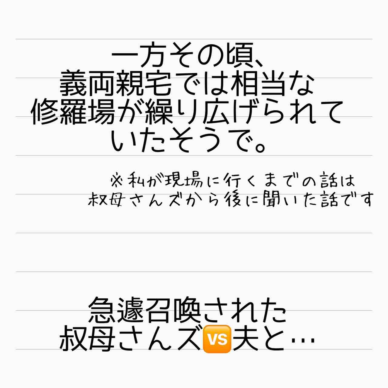 叔母さんズとお義母さんとの修羅場でとことん💩夫を地獄に落として欲しい。