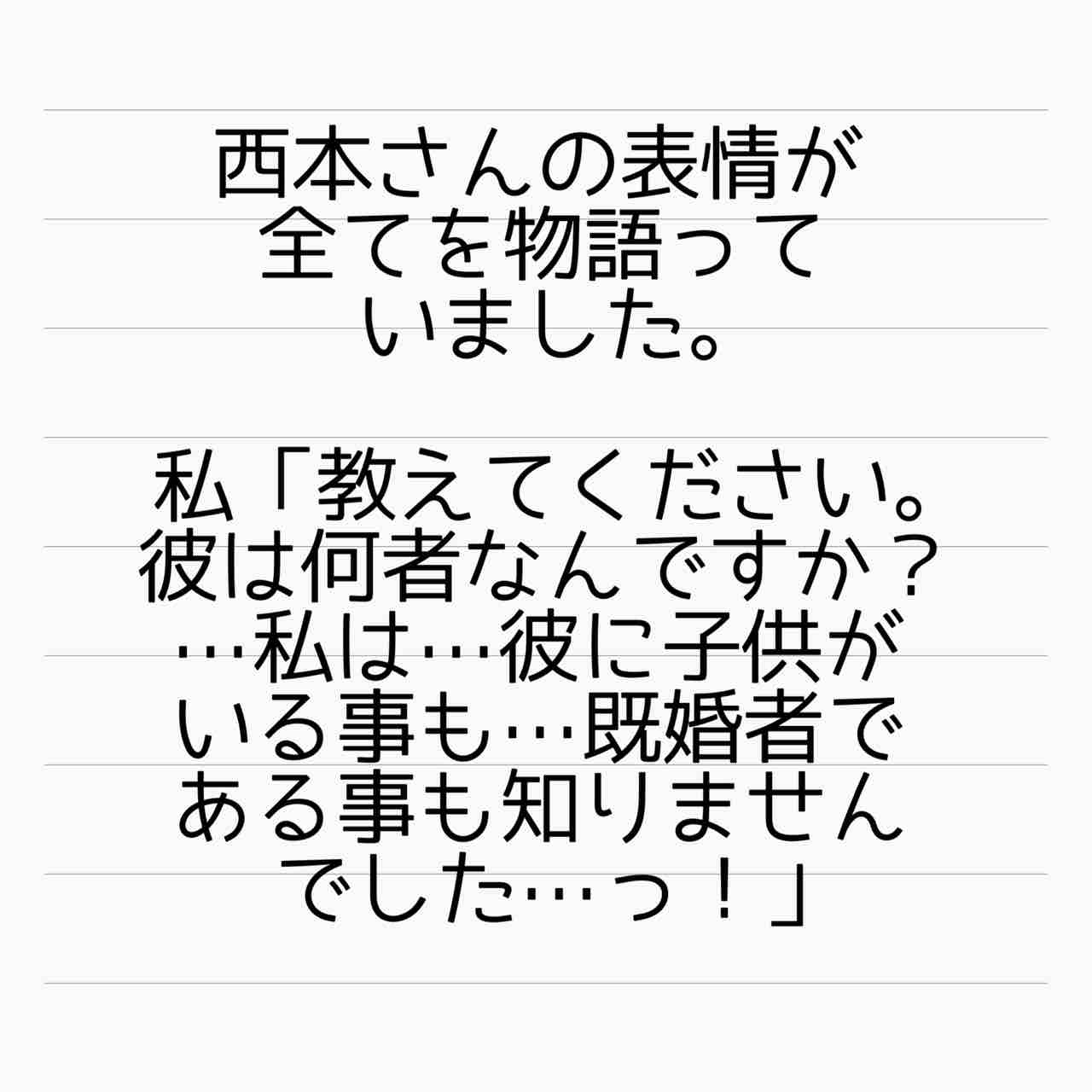 西本さんの知ってる第一子は、奥さまの子?まさかそれすら自称妻じゃないわよね?