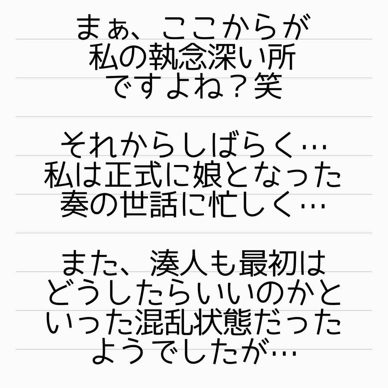 奏ちゃんがしゃべれるようになったということはあれから一、二年ぐらい経過してるということですよね。ご近所や湊人君の学校の保護者さんとかには奏ちゃんのことはどう説明しているのか気になります