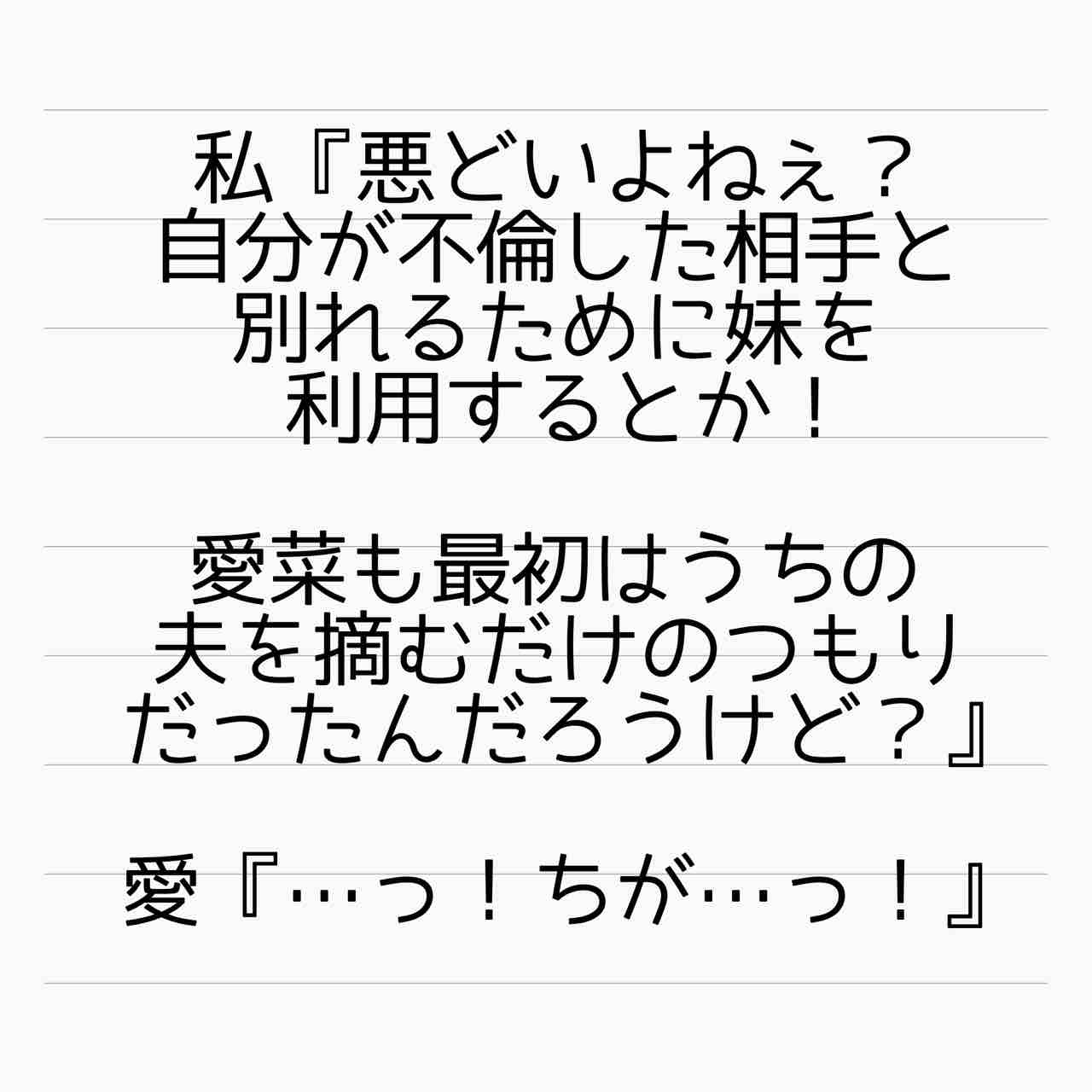 過ぎたこととは言え、同じ男と姉妹で不倫して、妹の方はその男の子供を妊娠。しかも、その間も愛菜とは関係が継続してるなんて。しかも、妹は子供の育児を放棄して不倫相手の妻に養育を丸投げしてるなんて。