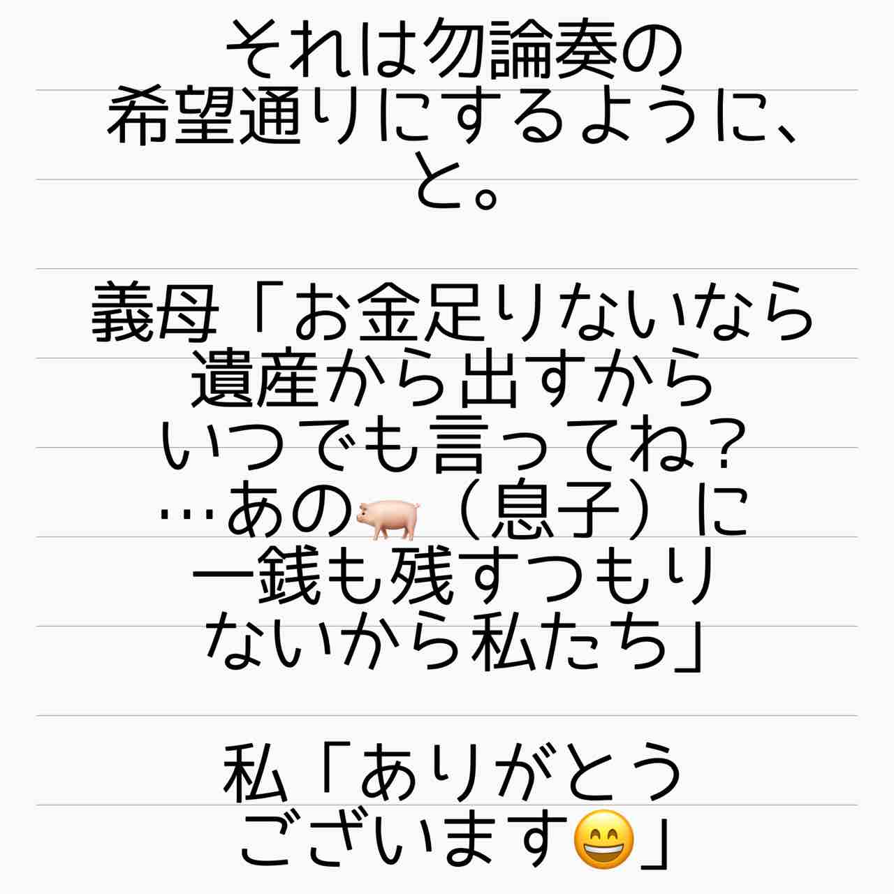 その後に速攻で離婚して、お母さんも義両親の養女になれば、🐖には遺産1/4しか行かない😆