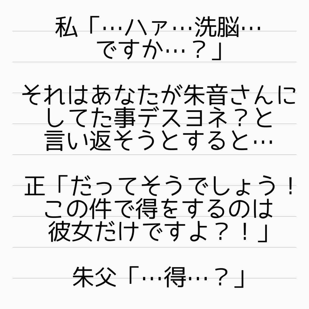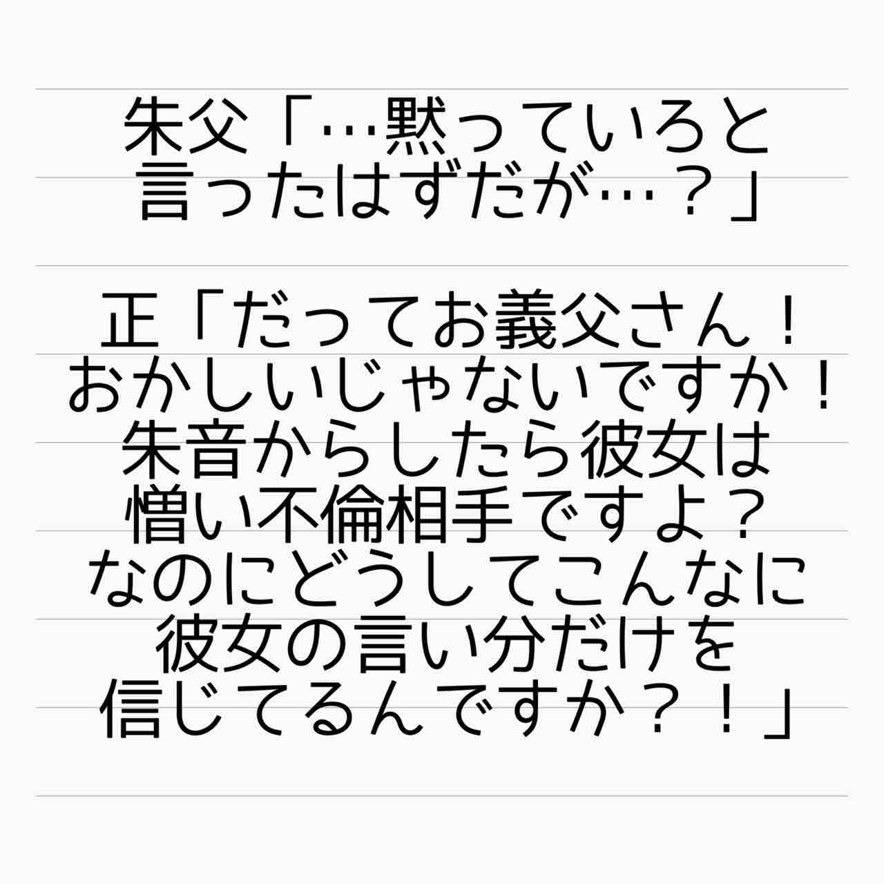 仮に朱音さんと正樹が離婚しても、正樹が和葉さんと再婚しなければ良いだけの話。和葉さんが自分と再婚するように求めても突っぱねれば良いだけなのに、和葉さんが得をするということは、再婚する気満々ってことじゃないですかw。