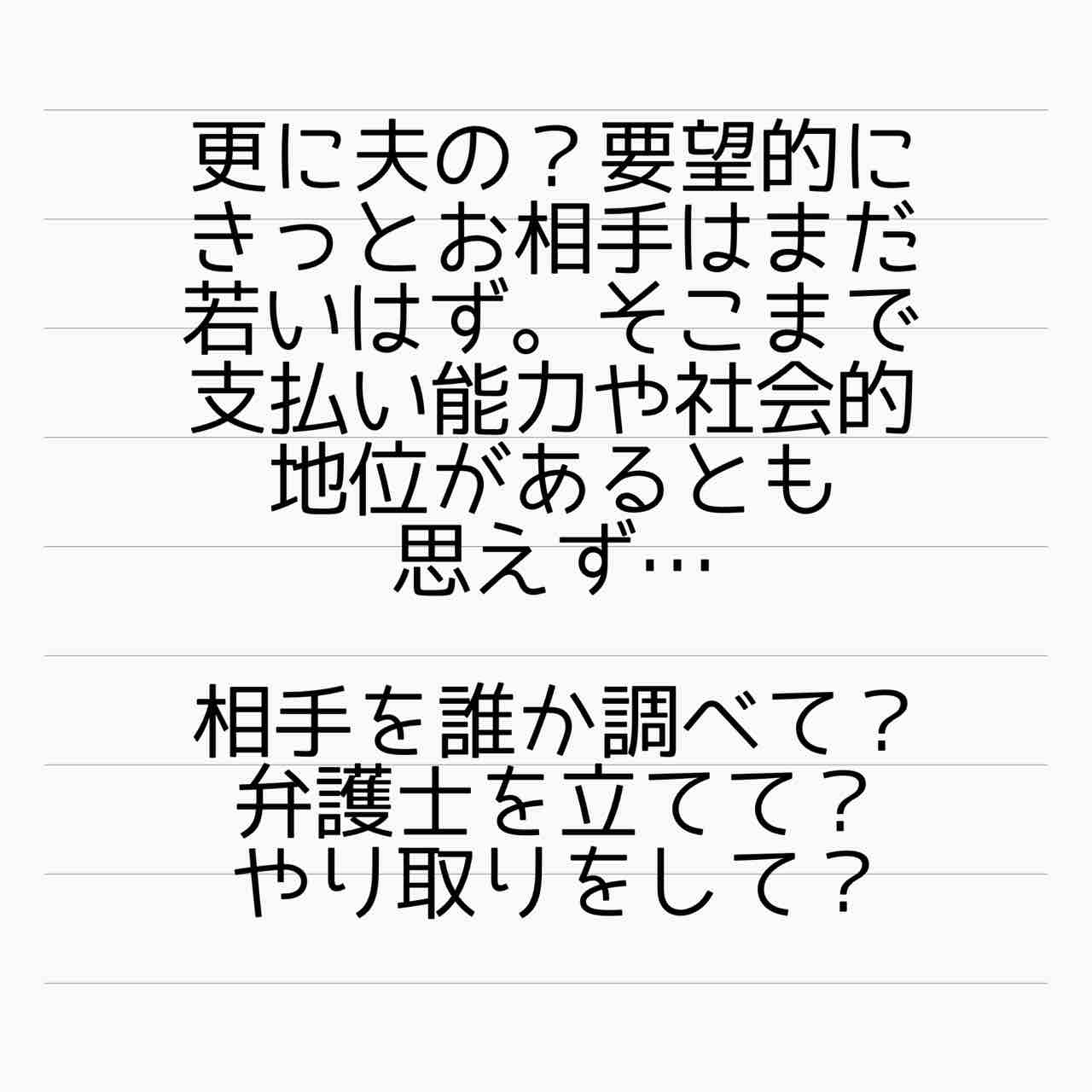 相手の女性がどう考えてるかは定かじゃないけど、モラ夫と(もうすぐ元になる)義母は急いで再婚させて、婚外子としての出産になるのをなんとしても避けたいようだからなあ🤭