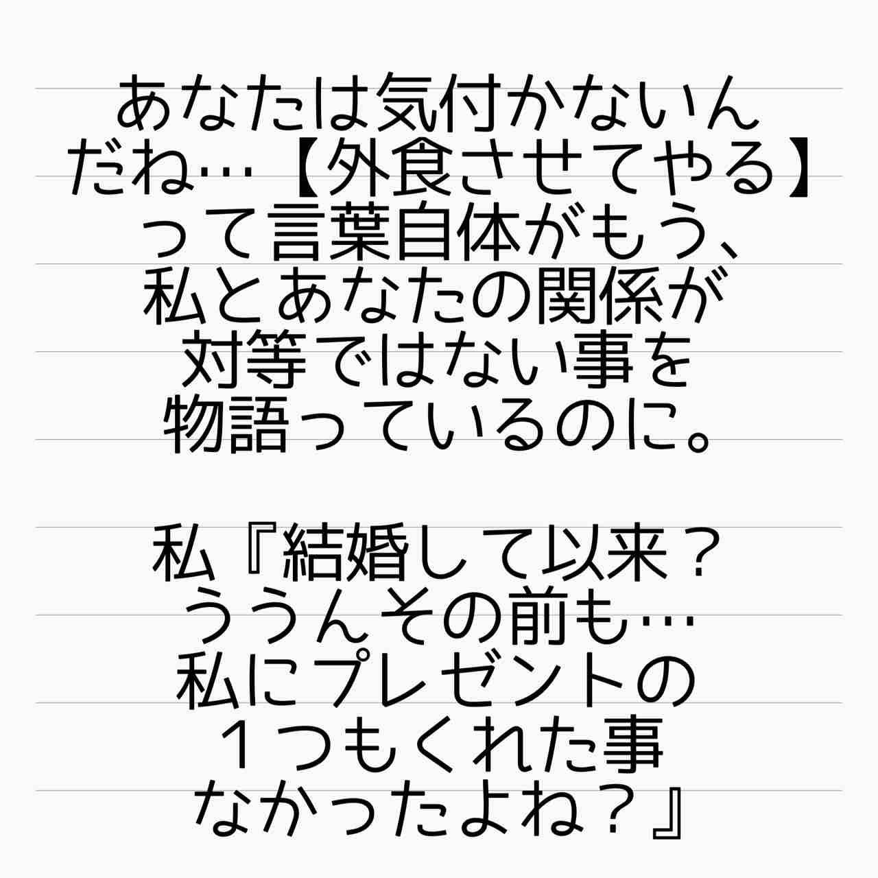 付き合ってから子供が小学生になるまで数年間、プレゼント(ケチ夫がくれる面倒なフライパンとか除いて)もらったことがないなんて…好きなものも好きなように買えないし、働こうとすると邪魔されるし、冷静に考えると何も良いところがない夫なんですが?