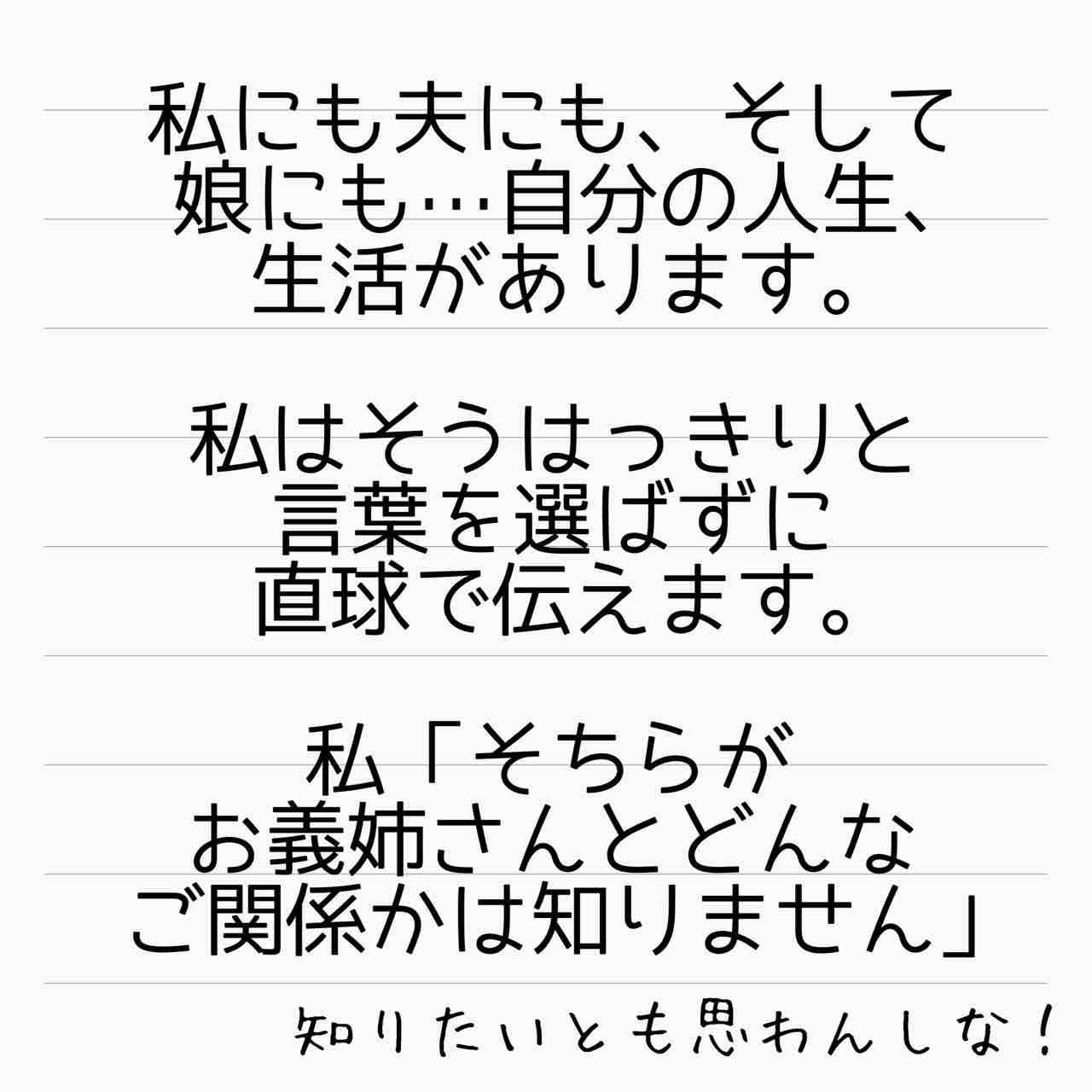 義姉の脅しなんて知ったこっちゃないよ、義姉がこちらに敵意満々なら尚更。