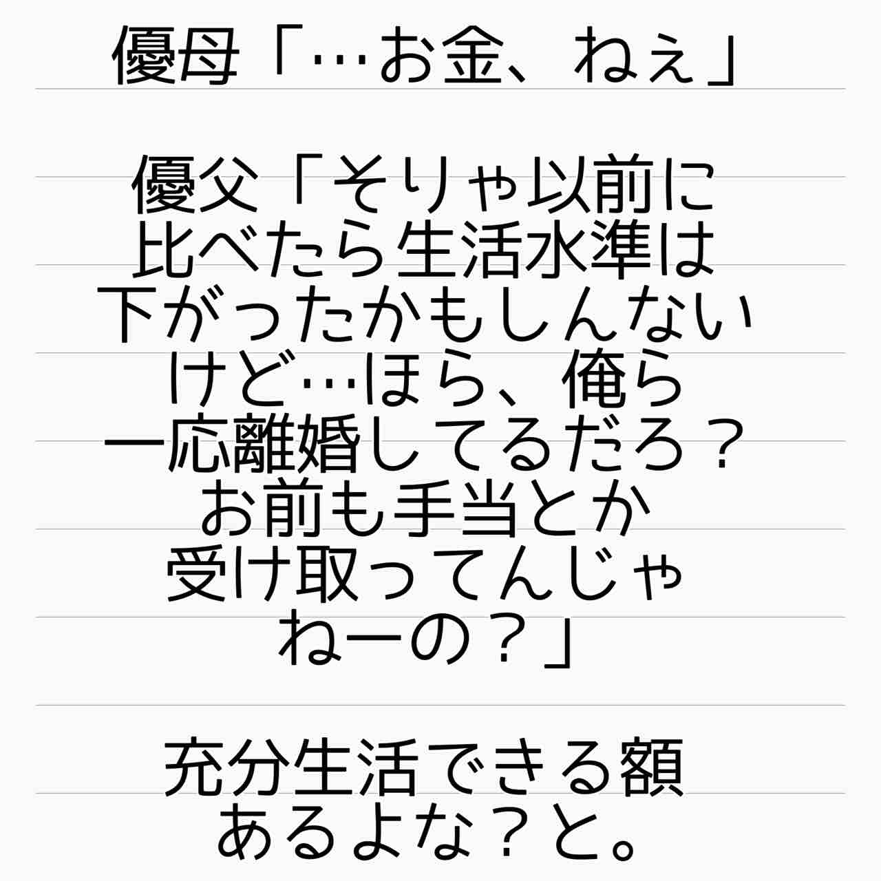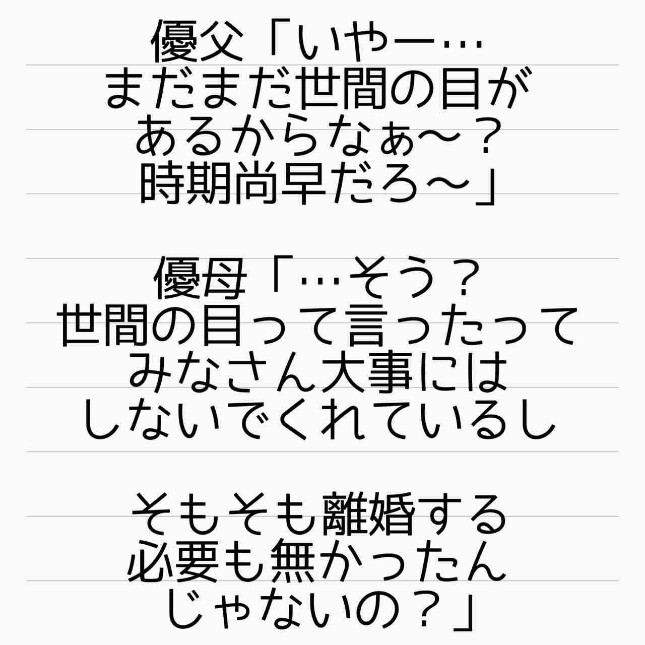 優父はもう厄介払いできたとばかりに再入籍する気なんて無さそう。養育費支払ってるだけまだマシかもしれないけど。このままのらりくらり逃げ続けて、別の女性と再婚してもおかしくないよなあ😞
