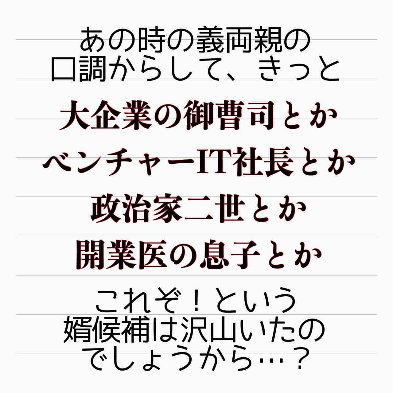 あの両親なら無神経に「あの人の息子さんはまだ独身なの?」とか聞いてそうだなあ。