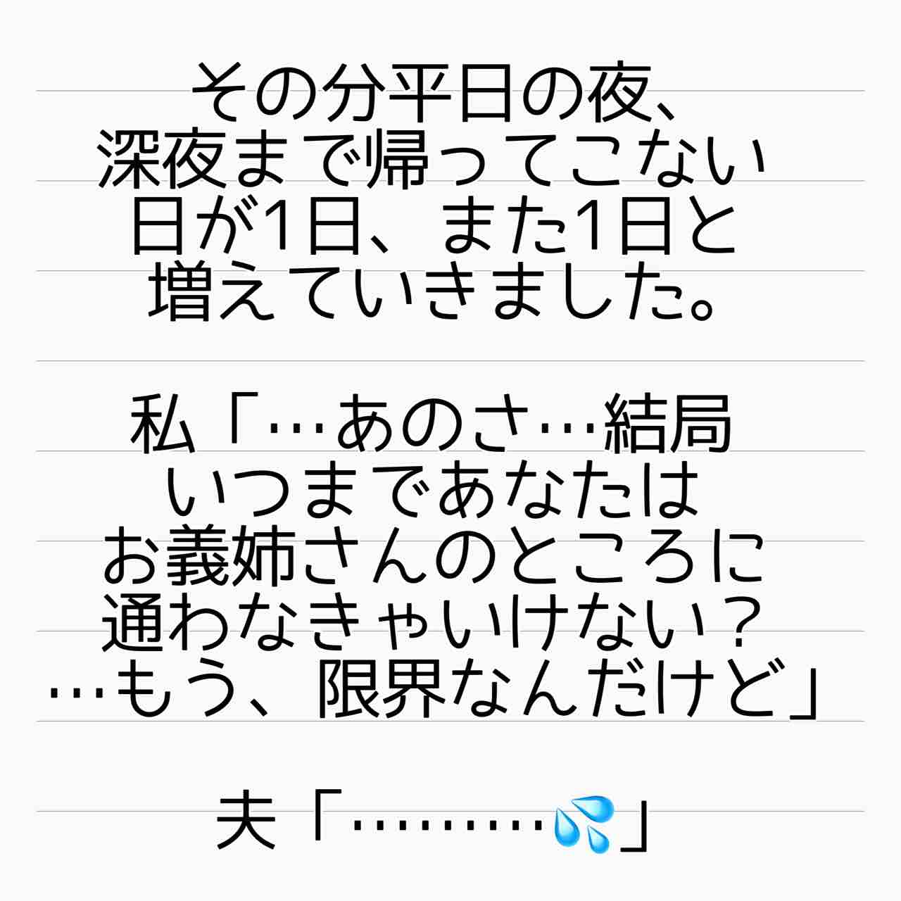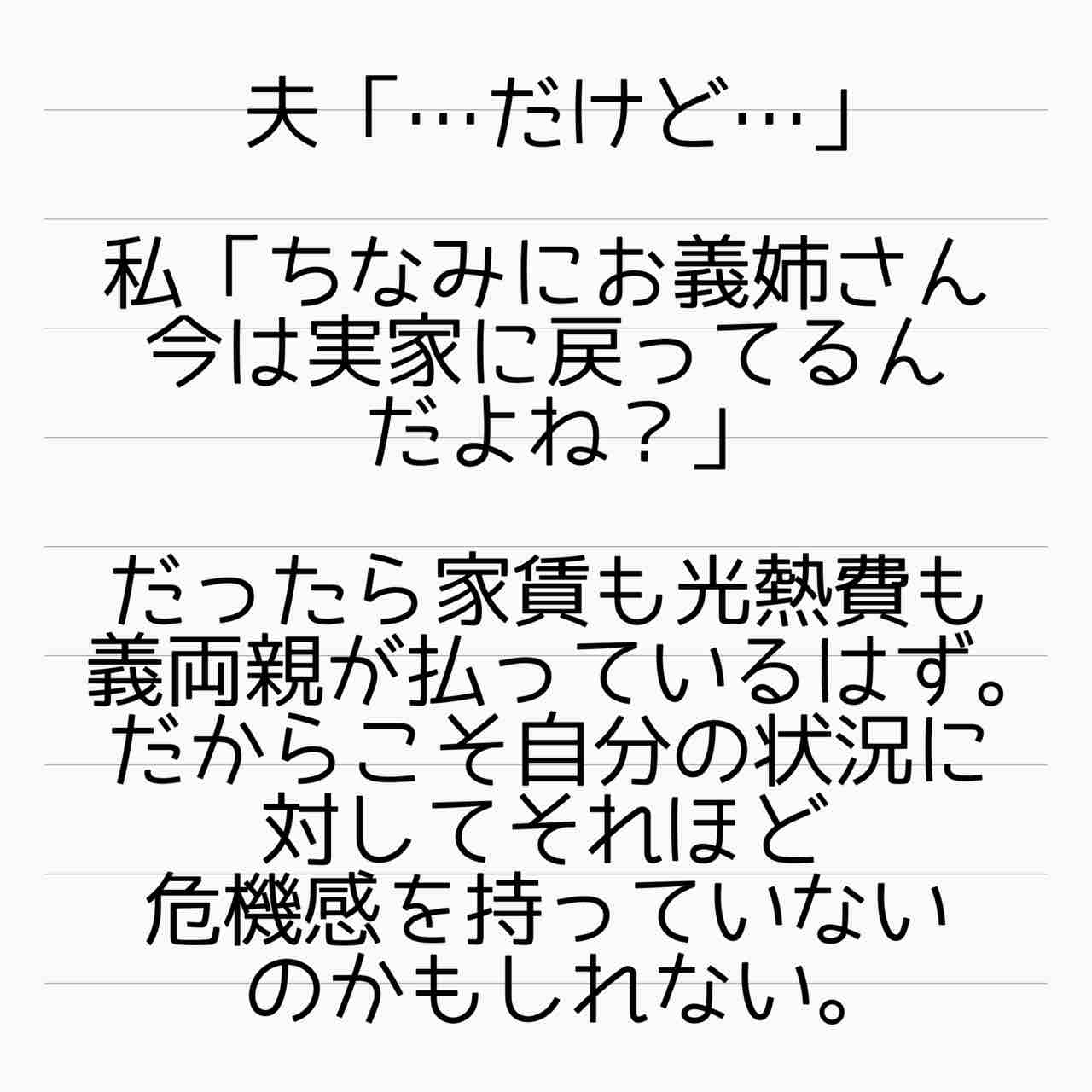 結局旦那は義姉の思い通りに動き回り家庭には我慢を強いている。