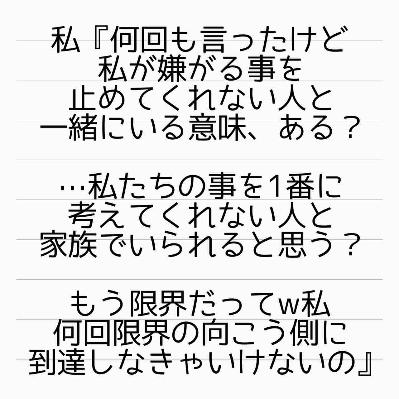 少なくとも家族としては失格すぎる行動を重ねに重ねてるんだから、別居は妥当すぎる。むしろ、あれだけ色々とやらかしておいて何度も裏切って、まだ一緒の家で暮らしていてくれるとでも?😞