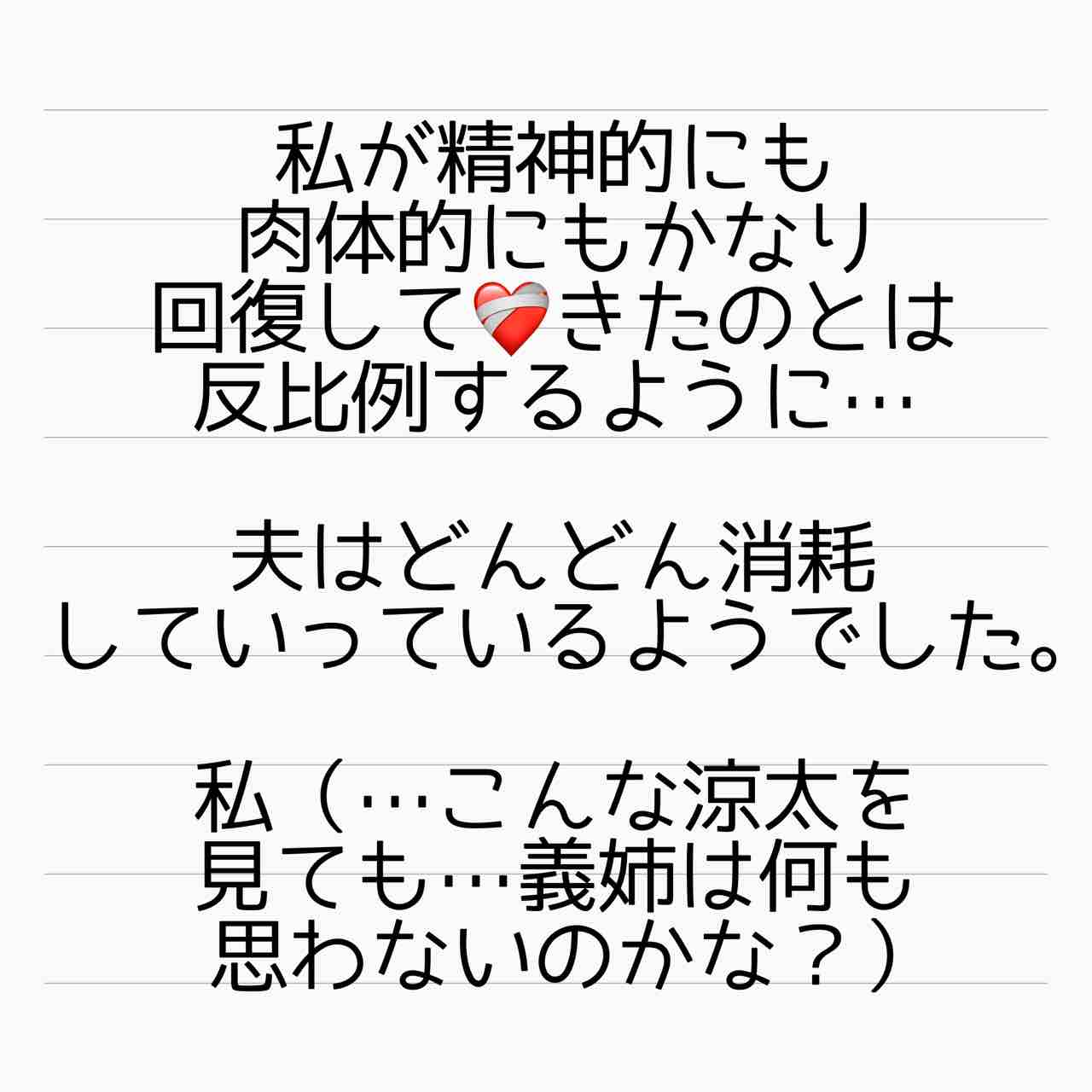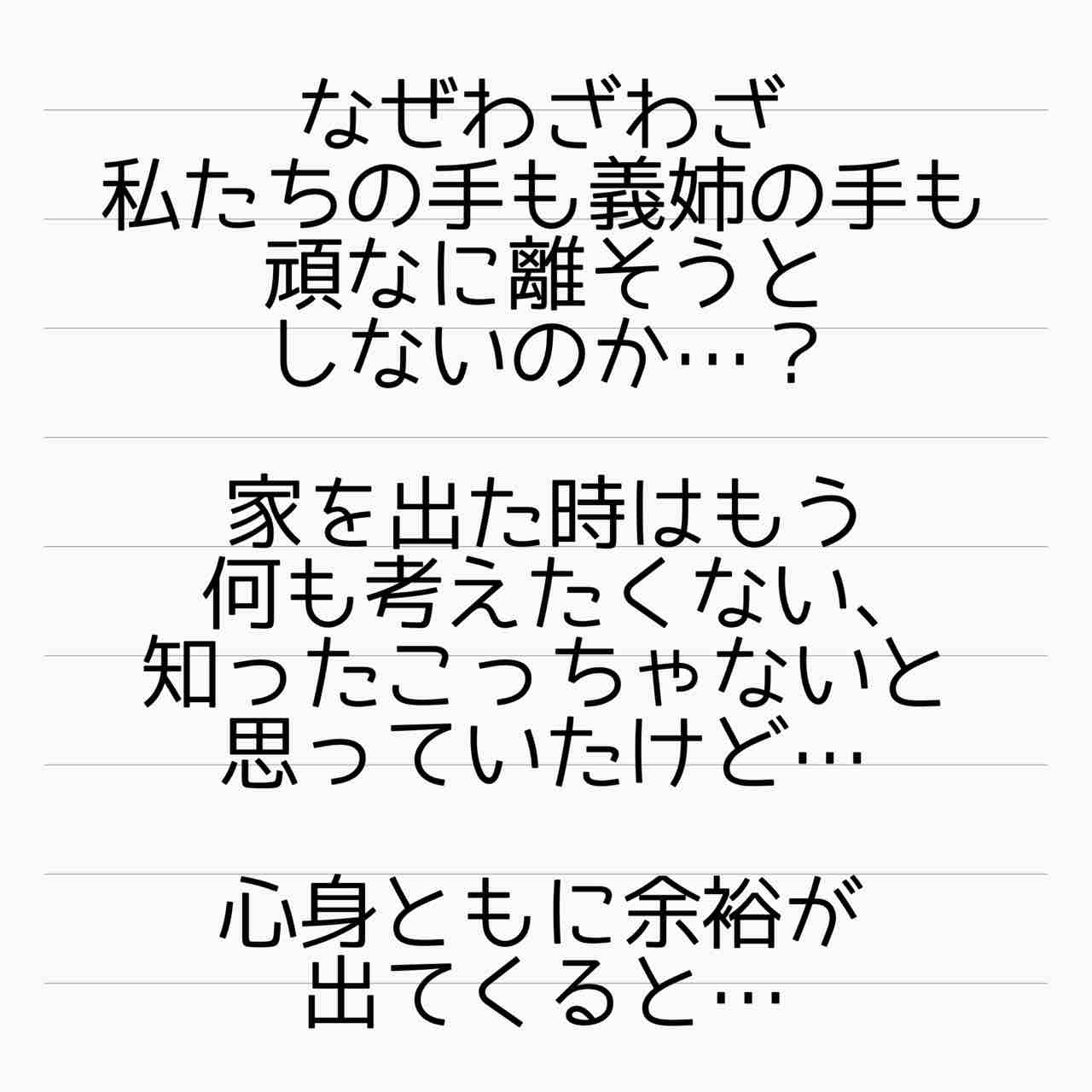 これまでを見てると、義姉との関係は相互依存というより呪縛のように感じますね。家庭の方は呪縛から逃れるための希望かな。自分でも義姉との関係は異常だと分かっていて家庭を拠り所にしようとしたけど、それでも義姉との関係を断ち切れない。でも、ここで家庭を手放したら最後だと分かっているので手放せない、のかな。