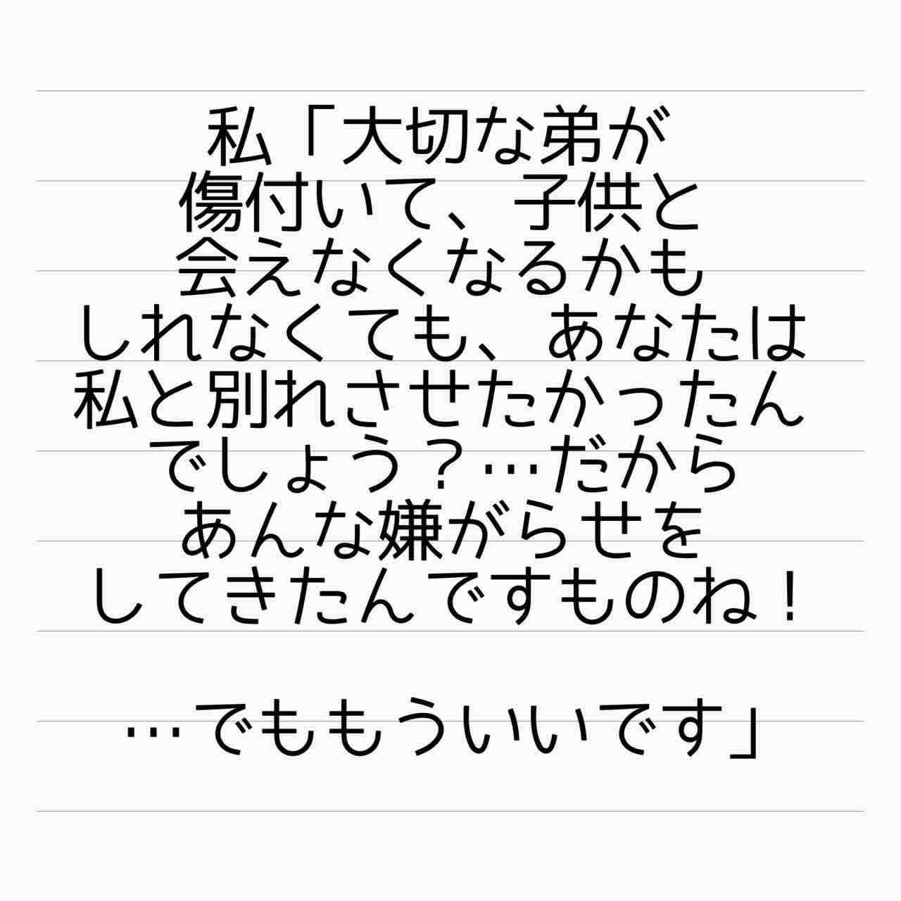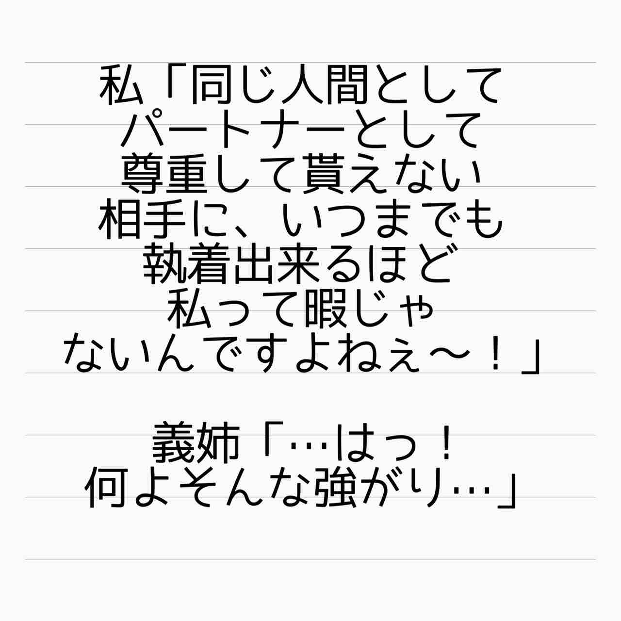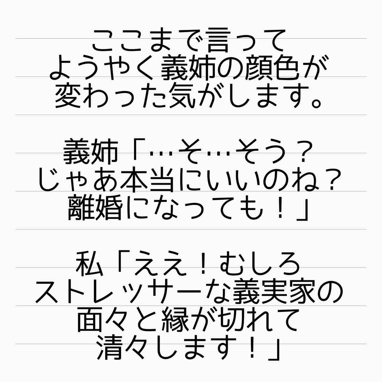 どうせ子ども抱えて1人で生きてく事なんて出来ないから、離婚したくなければ姉の奴隷夫を世話しろって脅すつもりだったんだろうけど。そんなの通じないよなあw