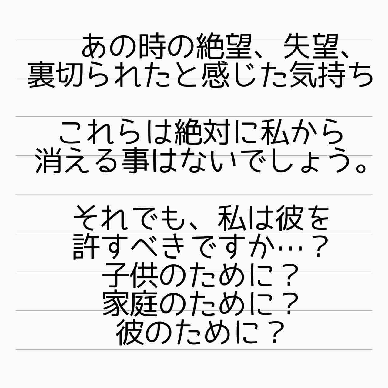 第一、今までの仕打ちを考えれば。復縁したとして妻がどんな気持ちになるか考えてないよなあ…