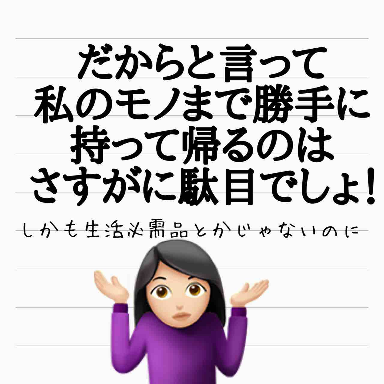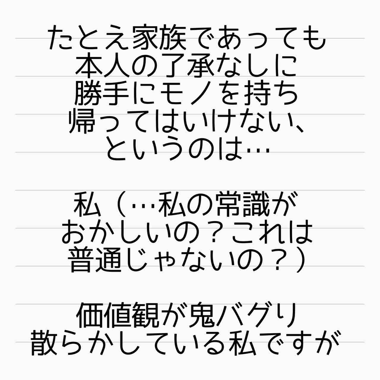 ここにあるお菓子は自由に食べていいよとか、そういうお互い了承したルールならともかく。一言も了承してないのに勝手に家に入って勝手にプライベートな場所に入って、勝手に高価なものを持っていくとか…