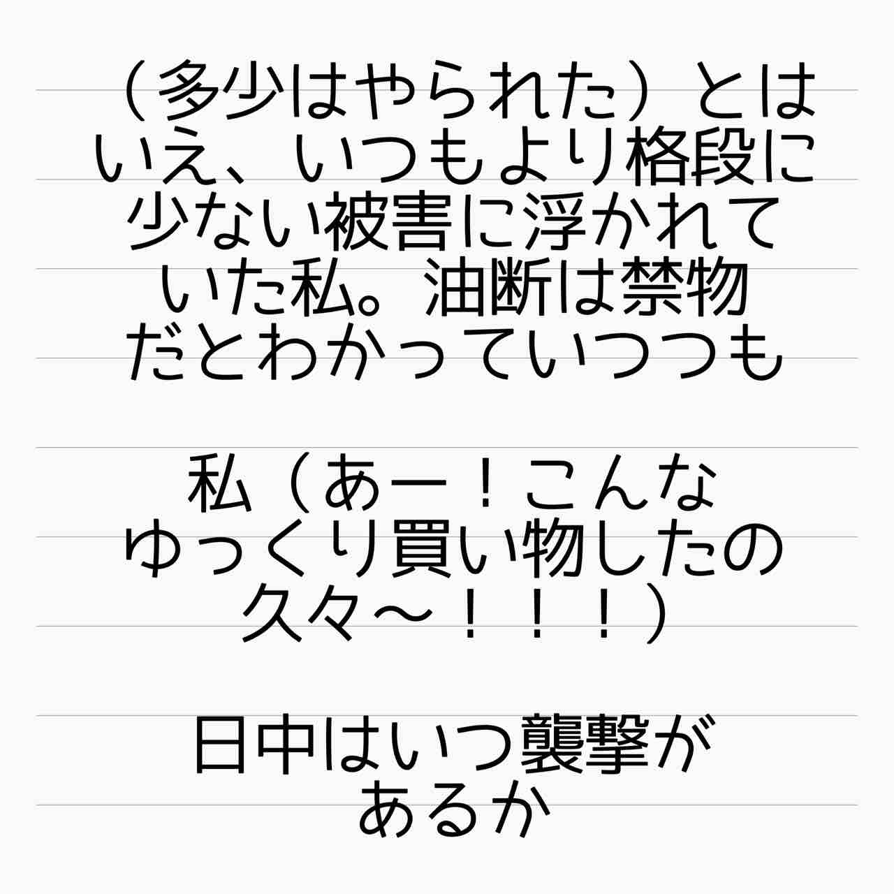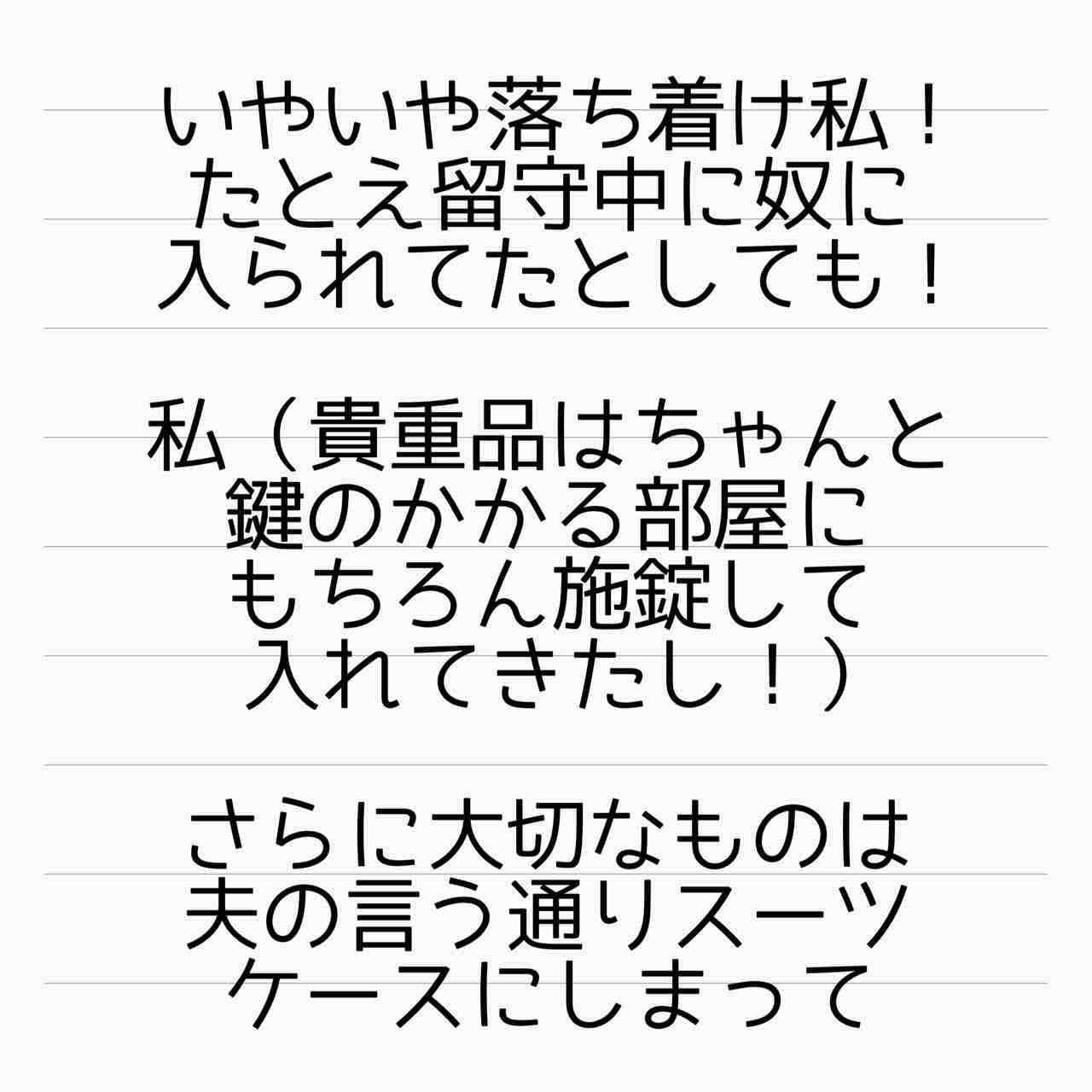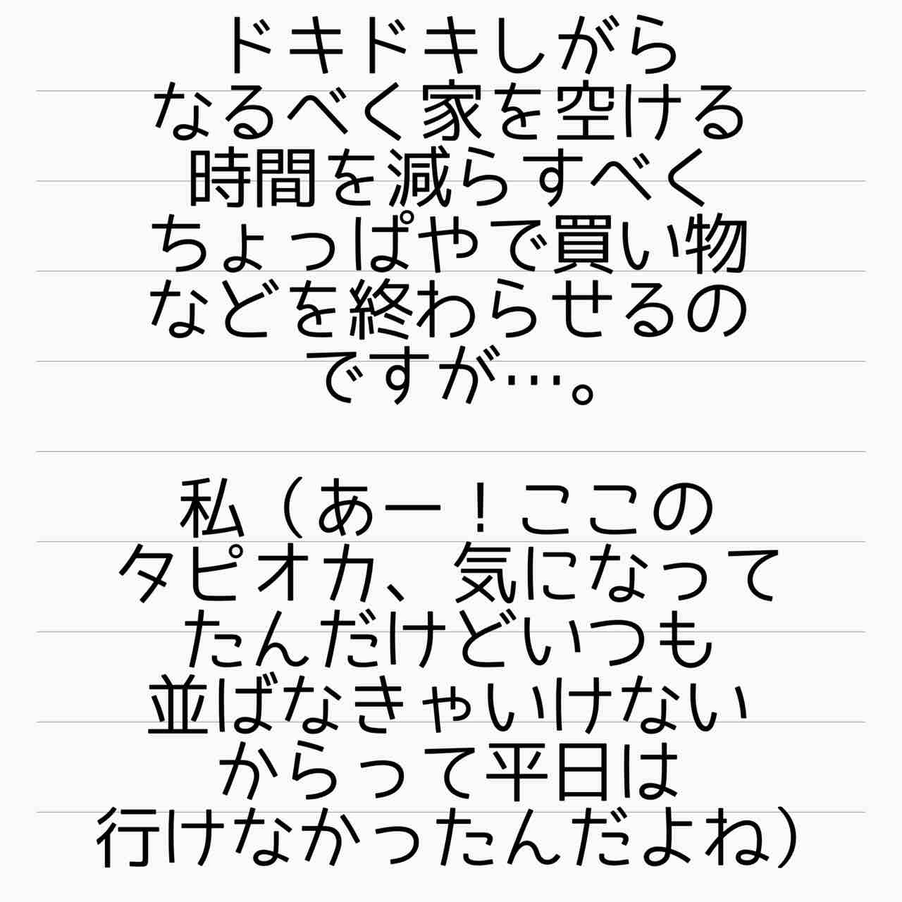 というかそもそも、買い物もゆっくりできないタピオカすら楽しむ余裕がない。自分の家なのに鍵かけて警戒。夫は番犬にならないどころか平気で妻の大切な物を差し出してそれが親孝行とすら思ってる…