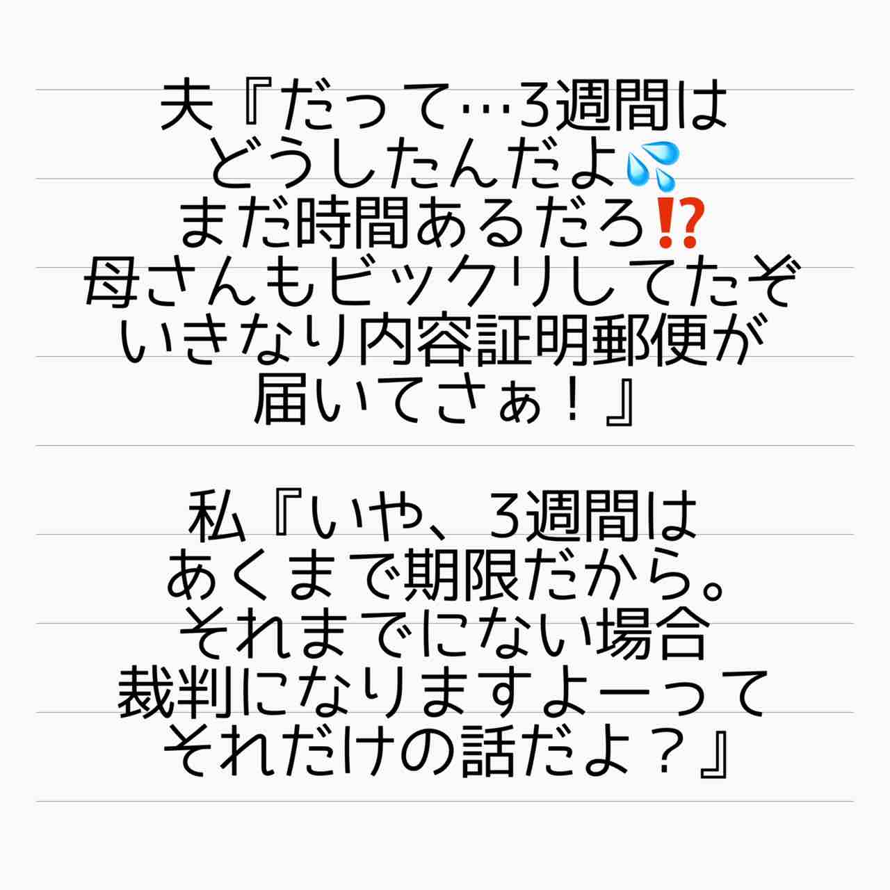 重婚話 反撃編 21 2021年01月26日 枚数の関係でここまでですさぁ、どんな条件をだしたのでしょうかー?でもこれ、条件は実はさほど重要じゃなかったんですけどね例のアレ、が分からない方は、重婚話反撃編5をご参照ください。ようやくあの時の伏線回収が開始です! 「海外赴任中の夫が現地女性と重婚していた話」カテゴリの最新記事 タグ :#インスタ発#裏切り#離婚#重婚#モラハラ#不倫#海外赴任中 < 前の記事次の記事 > コメント コメント一覧 (3) 1. JUN 2021年01月27日 20:37 初めまして(❁ᴗ͈ˬᴗ͈)⁾⁾⁾ᵖᵉᵏᵒ Instagram読ませて頂いて、先読みも見させて頂いてます。 私は有責配偶者である夫に、のらりくらりと話し合いに応じないまま1年経ち近々また切り出すつもりです。協議離婚申し込み書‼️その手がありましたか〜と大変ためになりました‼️ありがとうございます。 それは裁判所へ行って記入する用紙なのでしょうか? 詳しく教えて頂けると有り難いです。 0 サレ妻@あいか がしました 2. サレ妻あいか 2021年01月28日 09:32 >>1 コメントありがとうございます。 これから戦いなんですね! 協議離婚申し入れ書は、ネットに文例が載っていますよ! 内容証明郵便はいくつか作成に注意点がありますので、詳しくはお近くの郵便局で聞いてみてください。また最近はE内容証明というのもあり、料金的にはこちらのほうがお得です。 本来なら弁護士さんや書士さんに作成していただくのが間違いないと思うのですが…。 しっかり調べれば自分でもできますよ! JUNさんがご自身にとって一番良い道に進めますように…! 0 サレ妻@あいか がしました 3. JUN 2021年01月28日 15:44 ご返信ありがとうございます‼️ 早速ググッて文例見ながら作成したいと思います😊 誠にありがとうございました(❁ᴗ͈ˬᴗ͈)⁾⁾⁾ᵖᵉᵏᵒ 0 サレ妻@あいか がしました コメントフォーム 名前 コメント 記事の評価 リセット リセット 顔 星 情報を記憶 コメントを投稿する