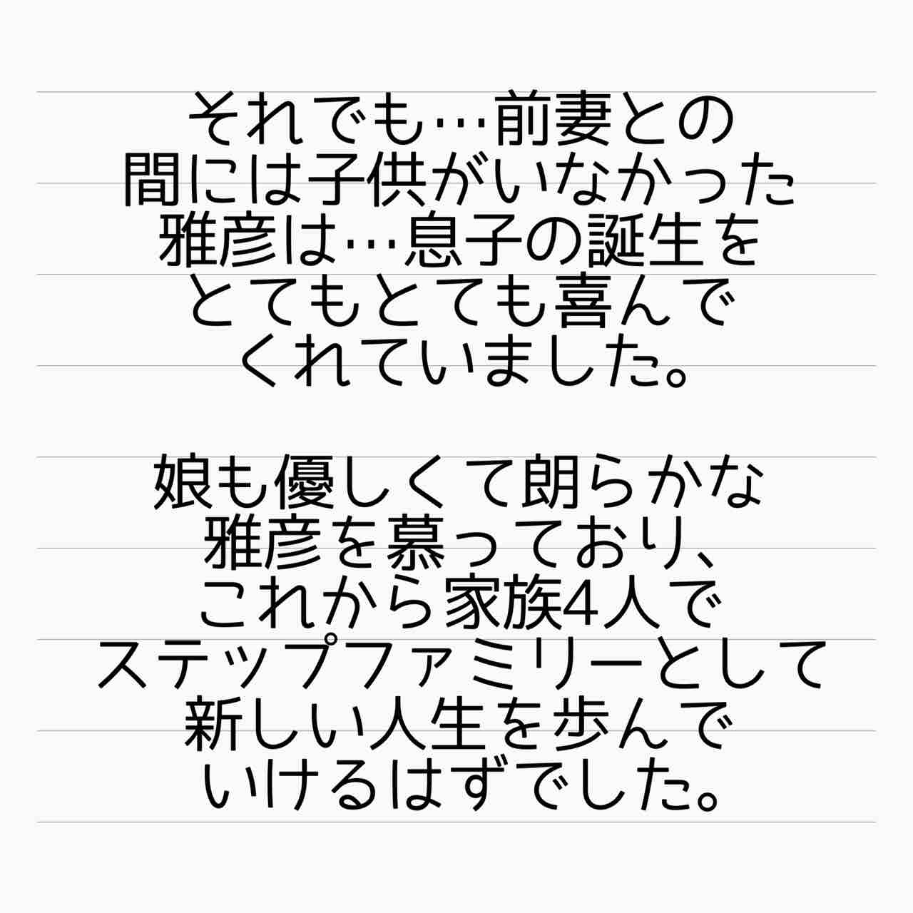 産後10日でホームレスになった話 1 2021年03月13日 新しくサレ妻しょう子のお話を始めます!サクサク更新して参りますので、お付き合いいただけると嬉しいです!再婚相手の雅彦とうまくやっていたはずのしょう子ですが…。 「産後10日でホームレスになった話」カテゴリの最新記事 タグ :#インスタ発#不倫#裏切り#離婚#サレ妻#ホームレス#ステップファミリー#再婚 < 前の記事次の記事 > コメント コメント一覧 (2) 1. さと美 2021年03月13日 09:40 はじめまして。 まずはあいかさんご自身のお話の完結おめでとうございます。 インスタで知り、こっそりフォローさせていただいています。 大変でしたね…いやもう大変なんて言葉では片付かないですね。 どうかお身体ご自愛くださいますように。 こちらのしょう子さんのお話も楽しみにしています。 0 サレ妻@あいか がしました 2. サレ妻あいか 2021年03月13日 15:01 >>1 コメントありがとうございます! 大変でしたが…過ぎ去ってみると熱さを忘れられますから💦 しょう子のお話も、ぜひよろしくお願いいたします! 0 サレ妻@あいか がしました コメントフォーム 名前 コメント 記事の評価 リセット リセット 顔 星 情報を記憶 コメントを投稿する