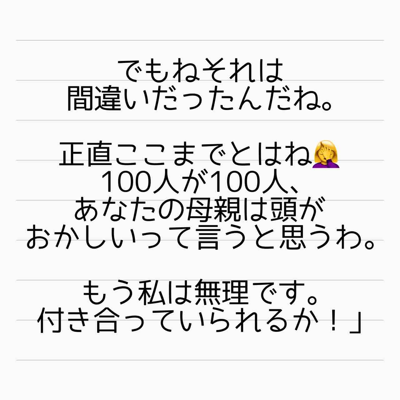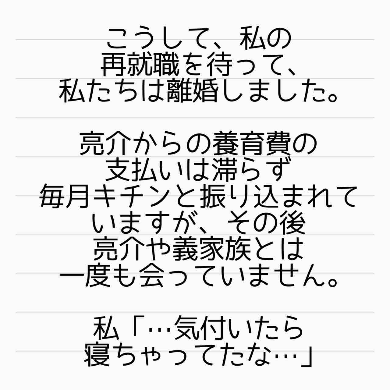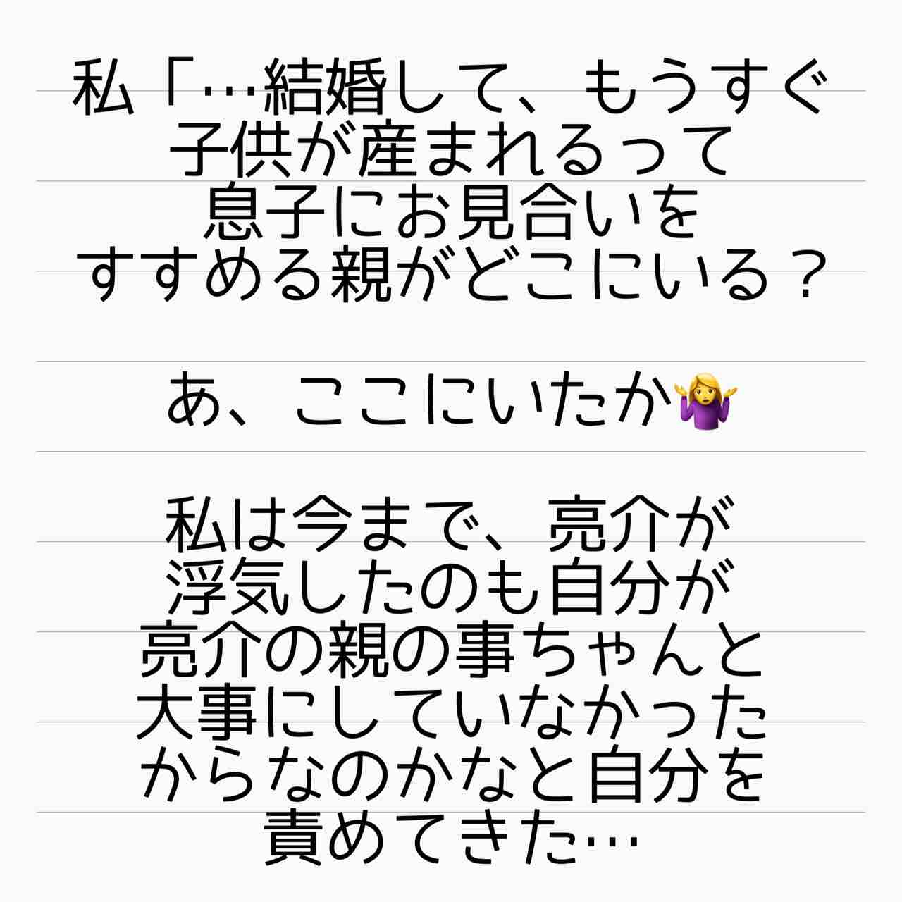 産後10日でホームレスになった話 30 2021年03月27日 過去編終了です。最後駆け足になってしまい申し訳ありません。。。本当はもっといろいろと話し合いもあったそうです。【あいか】 「産後10日でホームレスになった話」カテゴリの最新記事 タグ :#インスタ発#不倫#裏切り#ホームレス#サレ妻#され妻#離婚#ステップファミリー#再婚 < 前の記事次の記事 > コメント コメント一覧 (15) 1. ミミ 2021年03月27日 15:43 同じ息子ラブ義母でも重婚💩夫の義母とはまたタイプの違う亮介と義母のひどさ腹立ちます💢あの亮介と義母でまして同居なんてどのお嫁さんも奴隷か家を出ていくしかないですね💀 しょうこさんせっかくあの鬼畜親子から解放されたのにまたとんでもない💩男💦波乱万丈すぎますね。しょうこさんの両親は他界してるので兄夫婦だけしか頼れる人がいないのも読んでてハラハラします。 0 サレ妻@あいか がしました 6. サレ妻あいか 2021年03月28日 02:42 >>1 コメントありがとうございます😊 そうなんですよ‼️一難去ってまた一難😭 でも、今は幸せにしておられるので、その過程をお話していきますね‼️ 0 サレ妻@あいか がしました 2. あつこ 2021年03月27日 15:47 養育費払ってるだけ凄いと思う私は毒されてるのか…🥺 0 サレ妻@あいか がしました 7. サレ妻あいか 2021年03月28日 02:43 >>2 コメントありがとうございます😊 私も実は思ってます😅世の中の養育費の踏み倒し率の高さを知るとね…🤷♀️ 0 サレ妻@あいか がしました 3. ぽんた 2021年03月27日 16:03 … 私の旦那は親を捨てて私たちを選びましたが、親を選ぶ人もいるんですね(T . T) 信じられない…、 0 サレ妻@あいか がしました 8. サレ妻あいか 2021年03月28日 02:44 >>3 コメントありがとうございます😊 親は捨てられないって‼️なら結婚なんてしちゃダメですよね🙅♀️ 0 サレ妻@あいか がしました 4. りー 2021年03月27日 16:37 この離婚の後、再婚相手にホームレスに追いやられるんですよね、、?結婚するの怖くなります、、 0 サレ妻@あいか がしました 9. サレ妻あいか 2021年03月28日 02:45 >>4 コメントありがとうございます😊 わかります😭私もなかなか再婚には踏み切れそうにありません💦 自分の見る目が信用できない💦 0 サレ妻@あいか がしました 5. あやと 2021年03月27日 18:34 これは、酷い姑だわ。結婚してるのに、見合いをさせるなんて。酷い姑の中で、3本の指に入りますね。仮に奥さまに落ち度があったとしても、この姑は、やっちゃいけない線を越えてしまいましたね。 浮気も悪いけど、結婚してる息子に見合いは無いです。 バカな息子ですね。残念です。この息子が再婚していない事を祈ります。 今は、二人のお子さんを引き取れているのでしょうか?お子さんを引き取れている事を祈ります。 0 サレ妻@あいか がしました 10. サレ妻あいか 2021年03月28日 02:46 >>5 コメントありがとうございます😊 そう、一線超えましたよね…。 義母にも天罰下ってます。 今は幸せに暮らしておられますよー‼️ 0 サレ妻@あいか がしました 11. なか 2021年03月28日 06:18 この元夫がこれから本編にどう関わってくるのか楽しみです! 0 サレ妻@あいか がしました 12. サレ妻あいか 2021年03月28日 11:51 >>11 コメントありがとうございます! しっかりがっつり関わってまいります! 0 サレ妻@あいか がしました 13. ブルトガング 2021年05月18日 16:46 元夫とか毒親とかいろいろありえないし、クズなのだが自分の男を見る目のなさも反省しないとまた繰り返すと思うな。あとここまで読んで1番の被害者が自分って思ってそうなところ。ダントツ1番の被害者は子供でかなり下に自分です。理由は子供は親を選べないけど自分が相手を選んでいるのだから。絶対に兆候はあったはずでなかったと言うのなら本当に見る目がないと言っていると同じ。クズには何を言っても無駄だけどクズではないから厳しい意見を言っております。 0 サレ妻@あいか がしました 14. サレ妻あいか 2021年05月19日 08:19 >>13 コメントありがとうございます☺️ ご意見もありがとうございます。私も結婚に失敗しているので、お言葉刺さります。 ただ、100%相手を理解して結婚するのは不可能ですよ。。。イチロー先生も「結婚はギャンブル」という名言を残しておられます。。。 兆候も今思えば…というのはあるのですが、その当時はわからなかったこともありますしね。 しょう子さんも私も、自分が1番の被害者だとは思っていませんし、そのように受け取られる表現をしてしまっていたとしたら、それはしょう子さんの本意ではなく単に私の力不足でしかないので、大変申し訳ないなと思います。 0 サレ妻@あいか がしました 15. ブルトガング 2021年05月19日 12:00 >>14 返信ありがとうございます。 実は僕も離婚しているのでそんな奴が何言ってんだですよね。 ただ僕は結婚しなきゃ良かったとは思っていません。許せないことは多々ありますが自分が至らない点も多々ありましたし、僕の場合は兆候もあったからです。ただ自分を成長