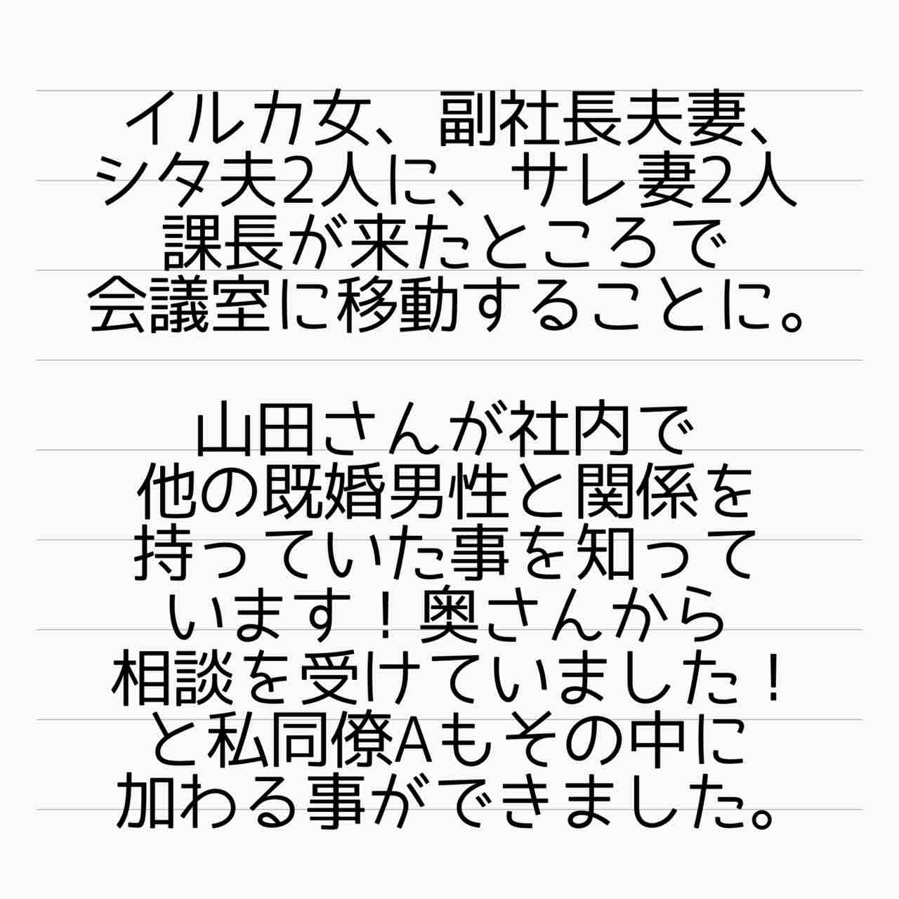 産後ホームレス 番外編 不倫常習犯あさみ 6 2021年04月02日 同僚A、すかさず参加を申し出るとか…やるなあ…。彼女曰く、「イルカ女が何か処分されるとしたら、しょう子にも知る権利があるかなって思ったから必死でした」とのことです。【あいか】 「産後ホームレス 番外編」カテゴリの最新記事 タグ :#ホームレス#再婚#ステップファミリー#サレ妻#され妻#不倫#裏切り#インスタ発#離婚 < 前の記事次の記事 > コメント コメントフォーム 名前 コメント 記事の評価 リセット リセット 顔 星 情報を記憶 コメントを投稿する
