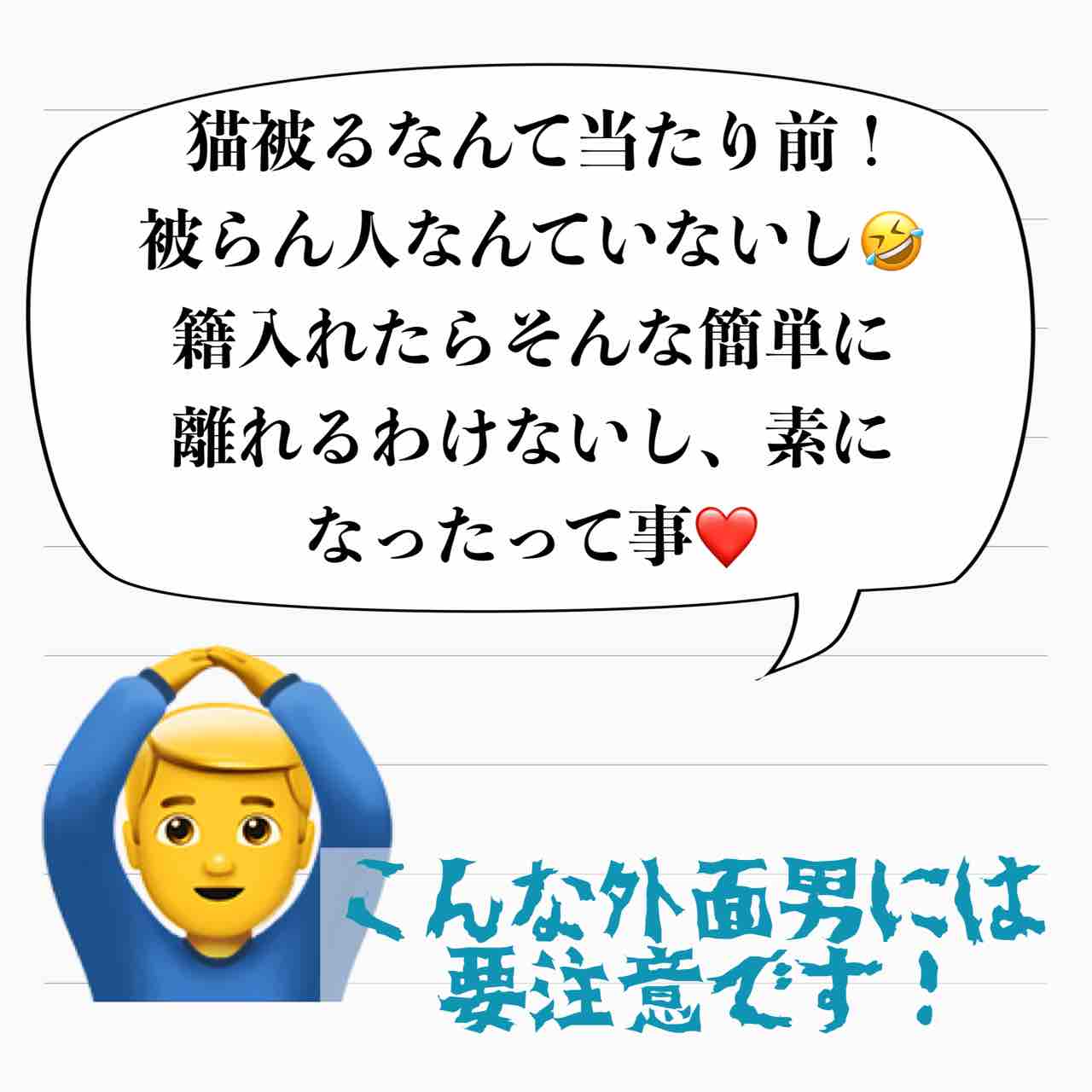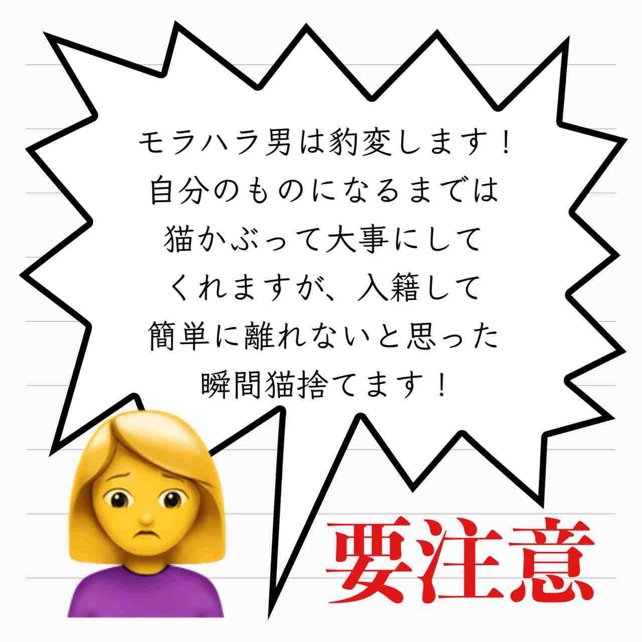 フォロワー様体験談 『所詮クズはクズなのだぁ』 史上最悪のクズの場合 6 2021年04月21日 こんな男には気を付けましょう!!!!私の元💩夫もそうでしたが、私の聞いた範囲でモラハラしてるという男は、大体「え?あの人が?そんな風には見えなかった」という外面最高夫がほとんどです。DV夫が外ではとても優しいというのと同じ原理なんですかね…。【あいか】本編もどうぞご覧ください。産後10日でホームレスになった話の第一回はこちら↓から。 ↑ご登録頂けると、LINEでブログの更新通知が届きます★ 「フォロワー様体験談『所詮クズはクズなのだぁ』」カテゴリの最新記事 タグ :#モラハラ#インスタ発#離婚#裏切り < 前の記事次の記事 > コメント コメント一覧 (4) 1. あ 2021年04月21日 09:08 というよりは外面すら悪かったらそもそも結婚できないって感じじゃないかな 0 サレ妻@あいか がしました 2. サレ妻あいか 2021年04月22日 08:07 >>1 コメントありがとうございます😊 うーん。🤔 外見も好みがありますからねー🤔 0 サレ妻@あいか がしました 3. 令和のビートたけし 2021年04月23日 01:51 そう、色んなモラハラ被害インスタ見てると、みんなその共通点ですよね。 でもどうしたら結婚前に見破れるのだろう。ハイパー外面よし雄を完全に見破る方法ってあるのかなぁ 0 サレ妻@あいか がしました 4. サレ妻あいか 2021年04月23日 02:33 >>3 コメントありがとうございます😊 そうなんですよね…。 イチロー選手も言っていましたが、結婚はギャンブルなので間違った!と思った時にすぐに逃げ出せるだけのお金と仕事をちゃんとしておかないとなと痛感しました😭 0 サレ妻@あいか がしました コメントフォーム 名前 コメント 記事の評価 リセット リセット 顔 星 情報を記憶 コメントを投稿する