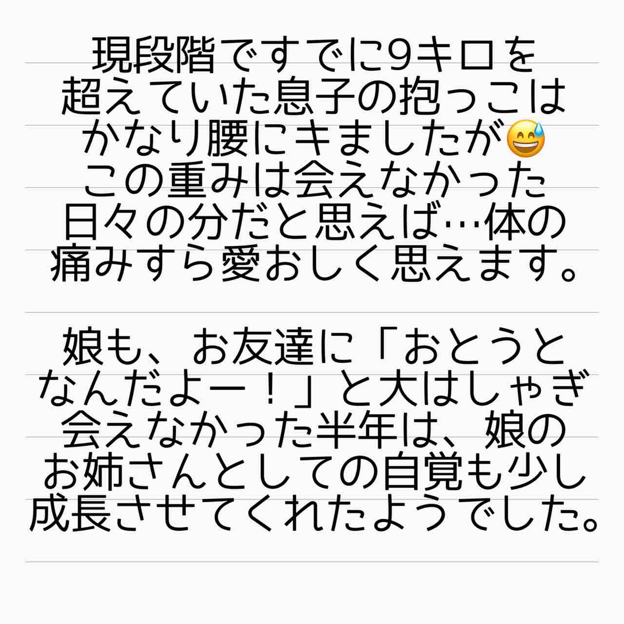 まだまだ辛い状況が続きそうですが、ちょっと太ってしまった息子ちゃんが、しょうこさんの本物の育児でスリムに可愛らしく育っていく姿を見たいな~と思いました。